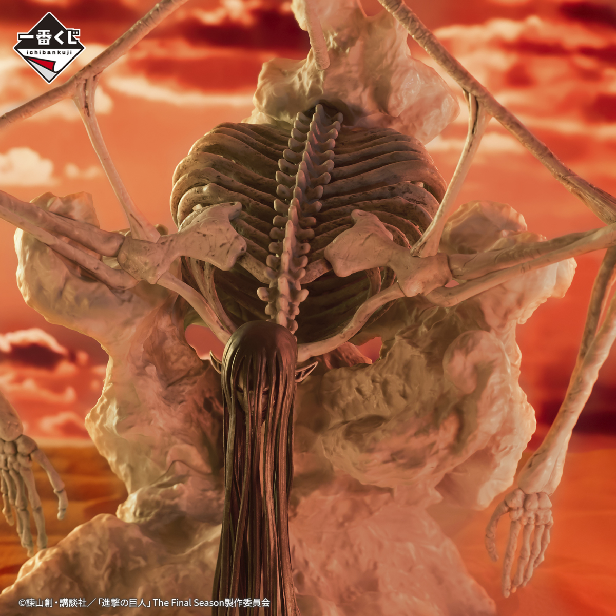 作為大獎登場的角色模型獎項除了先前預告的 A 賞「艾連&米卡莎&阿爾敏」、B 賞「里維」、C 賞「韓吉」外,還有再現 6 款不同表情的 I 賞「地鳴(超大型巨人)」,而一套只有一組的 LAST ONE 賞更推出了全高 28 公分的「末日巨人 MEGAIMPACT」。