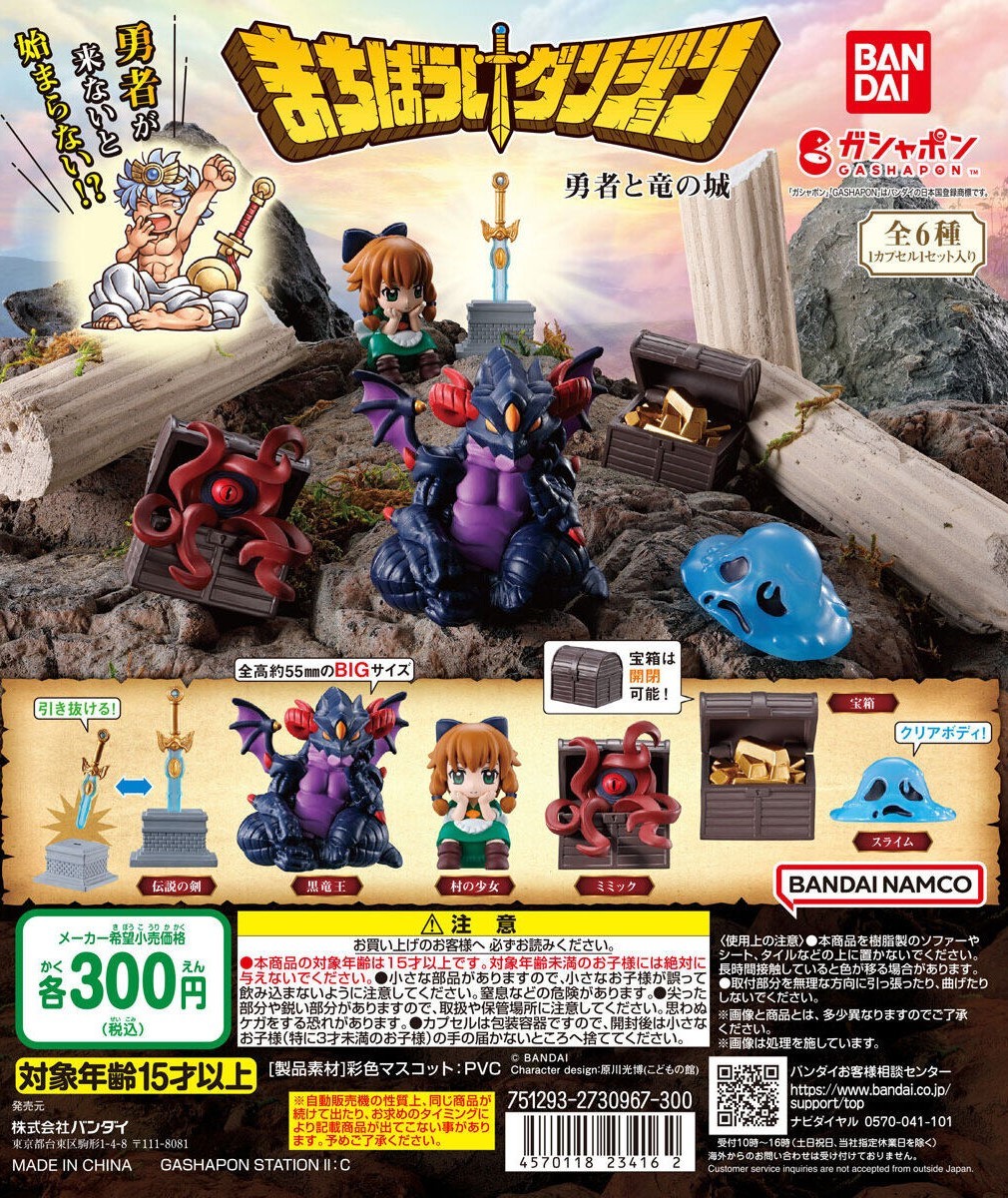 為紀念日本萬代公司轉蛋玩具品牌 GASHAPON 旗下好評的「等待中(まちぼうけ)」系列迎來五週年!將推出全新的原創系列『等待中的地下城 勇者與龍之城』轉蛋!參考售價為一轉 300 日圓,共有 6 種款式,預計於 2024 年 08 月開轉。