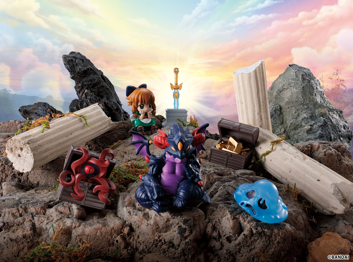 首彈以被黑龍王所統治的龍之城為背景,收錄有:等待著被拔出的傳說之劍、等待勇者來挑戰的 55 mm 黑龍王、村子裡的少女、冒出恐怖大眼的寶箱怪、裝滿金塊的寶箱(可以開闔),以及新手村必備的史萊姆,獨特角色透過精心的造型、塗裝進行再現,收集它們來創建屬於自己的地下城!