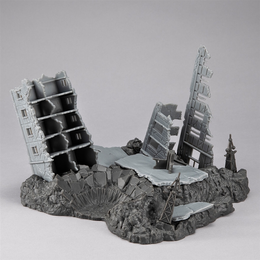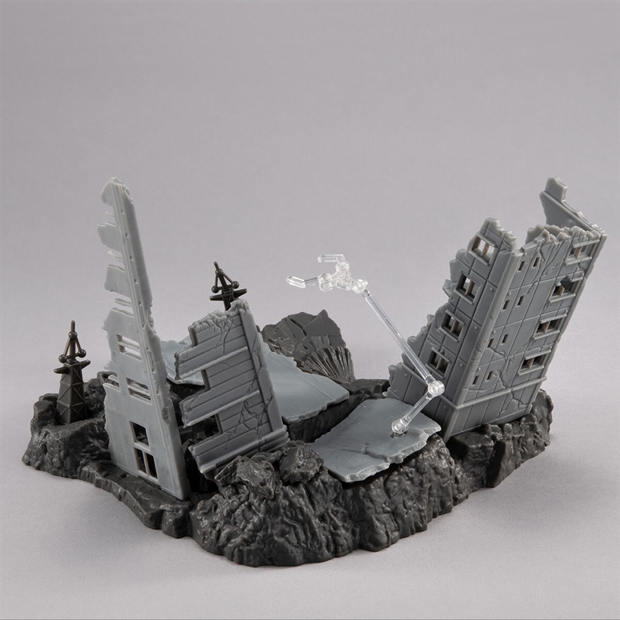 「G情景模型 紐約市廢墟(成形色版)」基於過去推出的一般版修改而來,商品中同樣包含兩種大樓、兩個電塔、破碎地面等廢墟零件和印有圖樣的水轉印貼紙,並且全部使用未經塗裝的零件成型色呈現,初學者無需專業技術也能輕鬆組裝,模型玩家則能自由上色表現出更加寫實的細節,能與另售的 1/144 比例鋼彈模型一同展示。