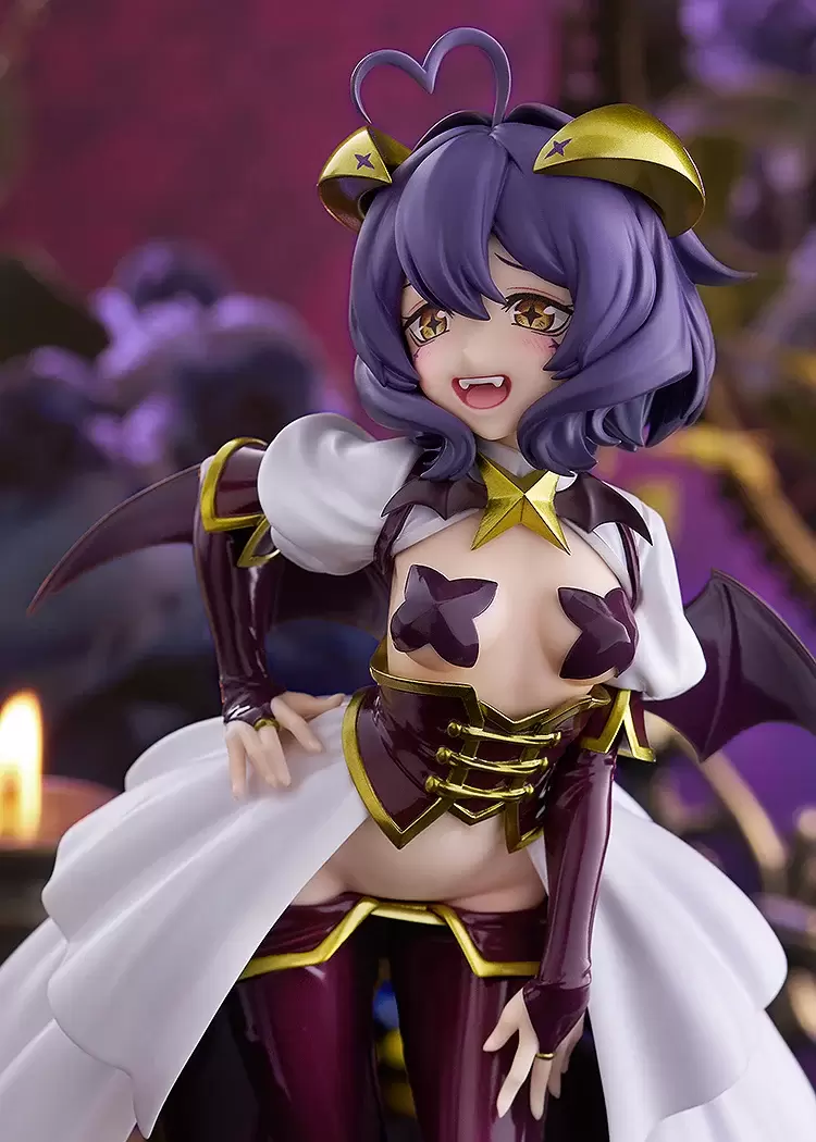 「POP UP PARADE 瑪吉雅邪惡 L size」無比例 PVC 塗裝完成品,尺寸全高約 22 公分,還原瑪吉雅邪惡大尺度的壞壞造型,仔細再現頭上的愛心狀呆毛、金色的牛角等細節,服裝與魔翼更是施以油亮光澤感的塗裝,搭配金屬色澤的金邊、澎裙襬和大面積露出的柔軟身體,營造不同的質感。單手插腰的高傲姿態搭配雙頰泛紅、恍惚癡迷的表情...今天要給魔法少女們什麼懲罰呢?