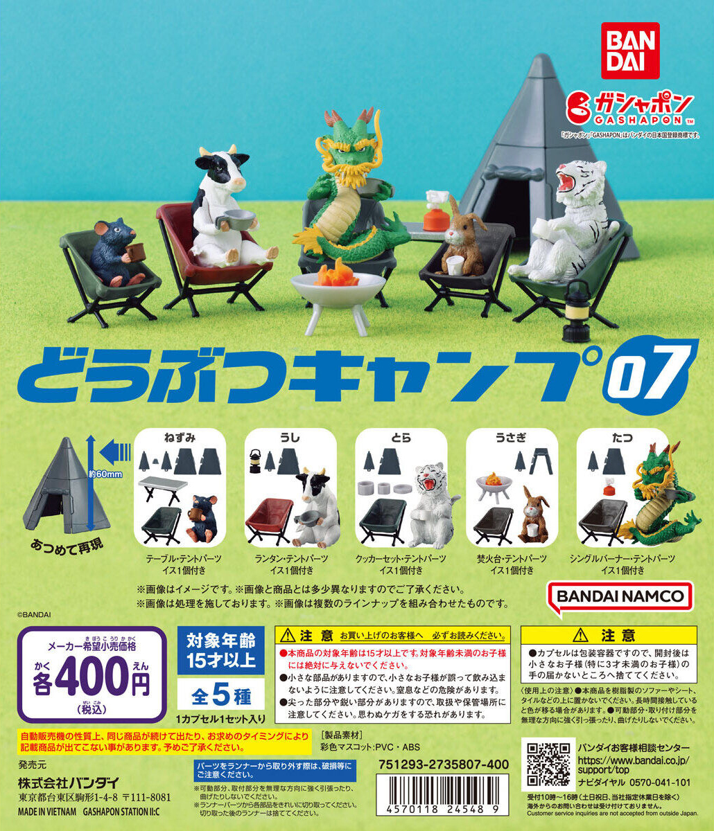 由日本萬代玩具公司轉蛋事業部 GASHAPON 發行的大人氣商品系列「動物露營 (どうぶつキャンプ) 」將在本(8)月發售最新的第七彈新作「動物露營07」!一共有 5 種款式可以收集,建議售價為每轉 400 日幣。