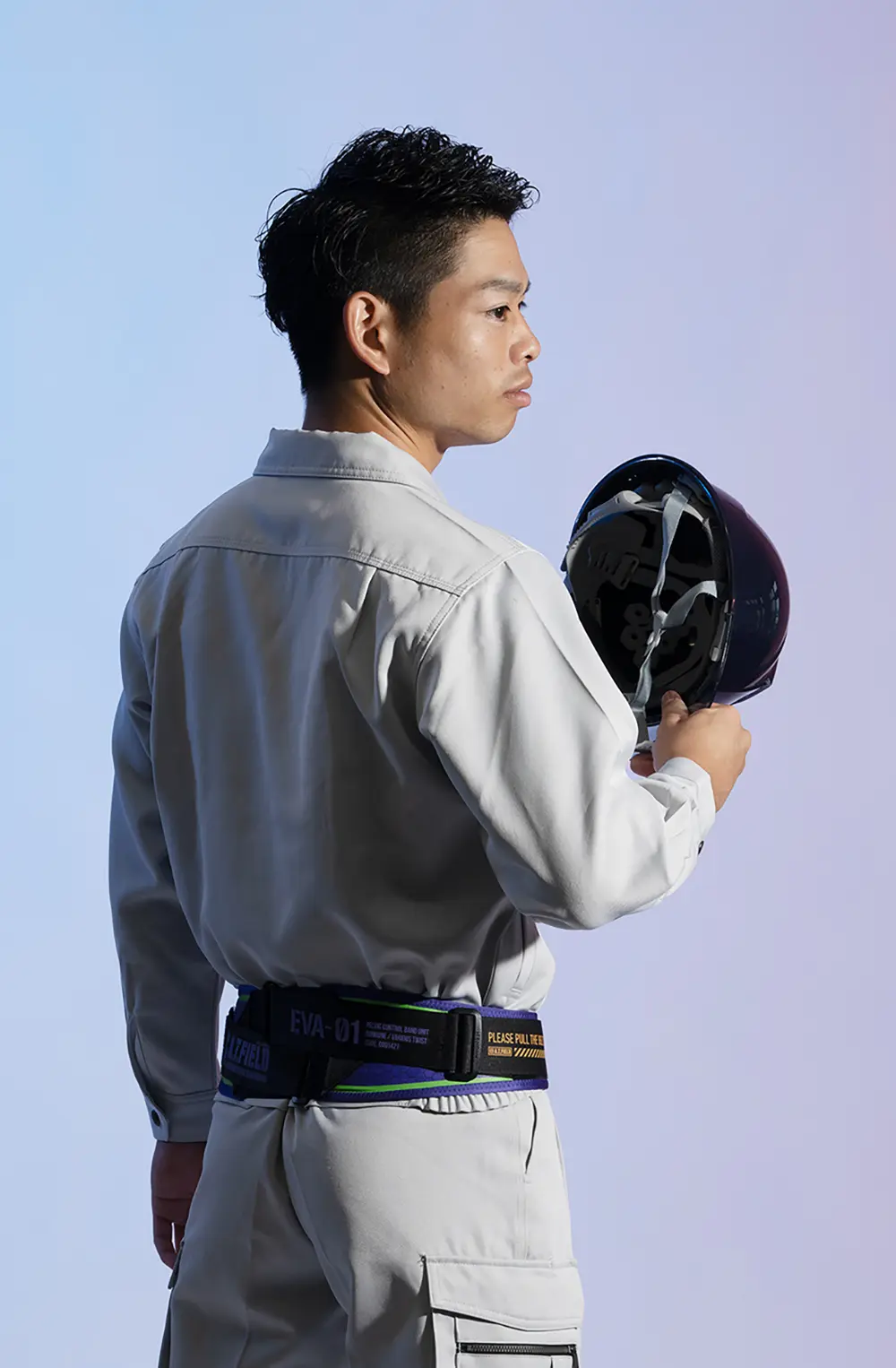 「A.T.FIELD EVANGELION WORK」是時尚工作器具品牌,既融合了新世紀福音戰士的世界觀,又融合了「堅韌,實用和機能性」 等元素,融入「A.T 力場」的概念,打造出防潑水、防寒與保護機能的品牌,表現出品牌的特質。