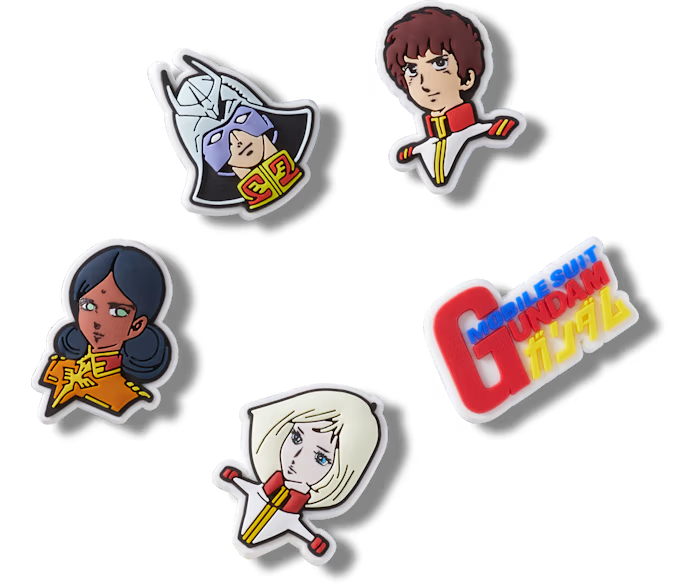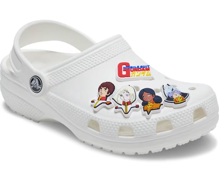 另有販售 Crocs 可以配置在鞋款做造型的鞋扣,以鋼彈中出現的角色為圖案設計,可以自由擺放在鞋面上玩出不同味道。