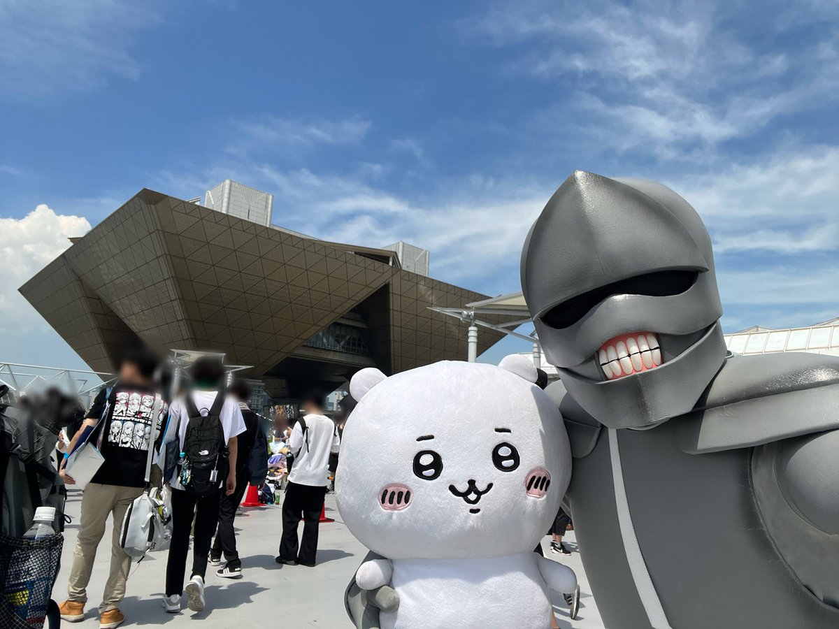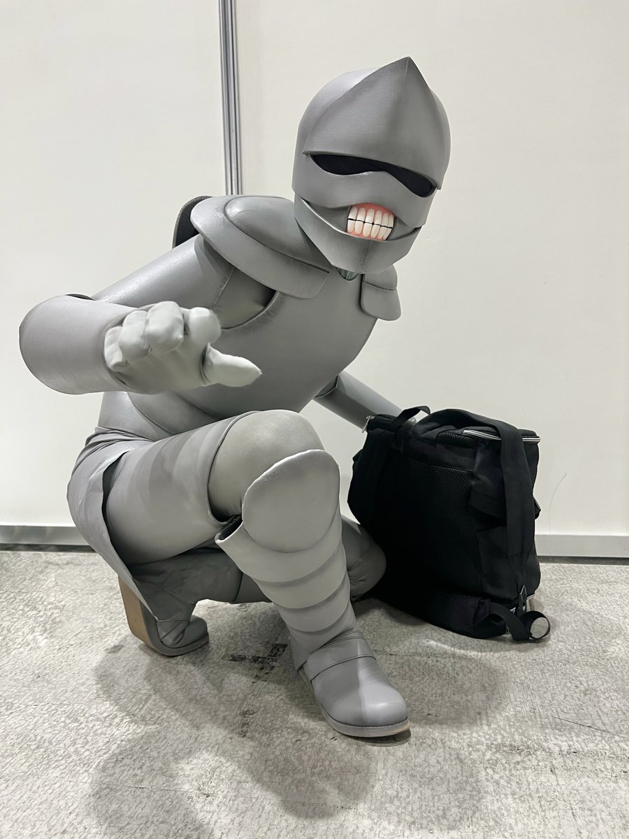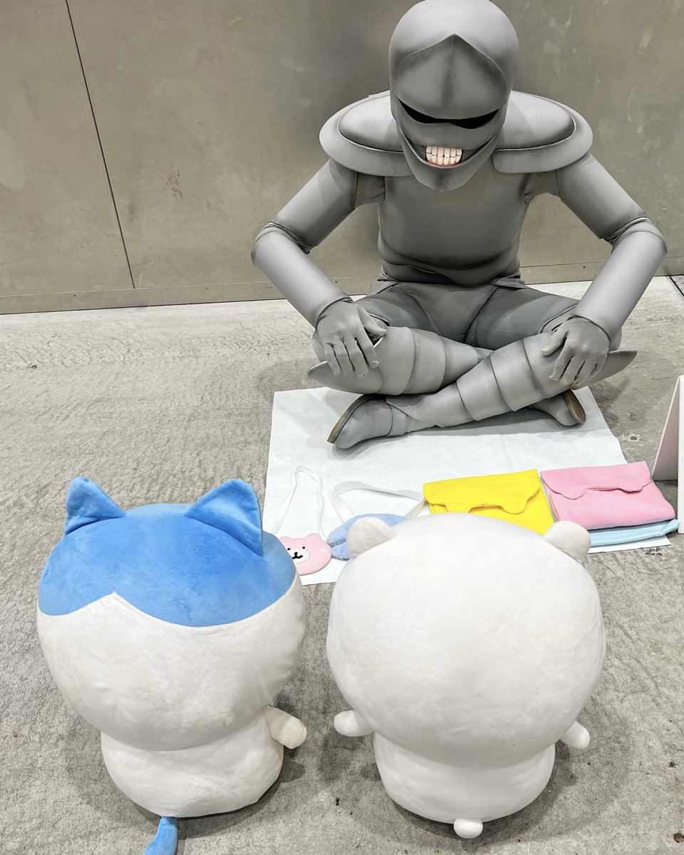 會場總有人驚豔的奇妙角色登場,其中一位 Coser アムロ ( @amuroray1104 ) 選擇了《吉伊卡哇 ちいかわ》中,備受喜愛的「盔甲人」( 鎧さん ) 出角,以精緻還原度超高的外觀呈現,也吸引不少到場遊客關注,在網路上也成為話題。