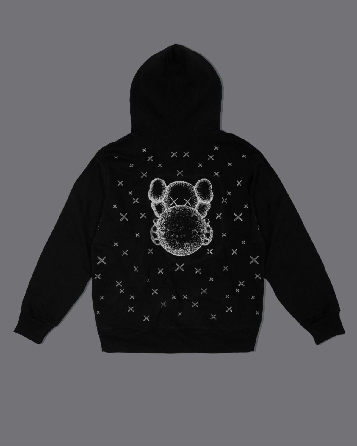 為慶祝“KAWS:HOLIDAY”上海站的盛大開幕,KAWS攜手AllRightsReserved聯合推出了一系列獨家收藏品,其中包括備受期待的限量版「COMPANION」藏品。該系列「COMPANION」公仔長約9.5英寸,以經典啡色、黑色和灰色呈現,當中的月球組件及外盒印刷更均用上夜光物料,別具特色。本次限量版衞衣亦加上小心思,背面部份印刷加入了反光物料,增強效果。