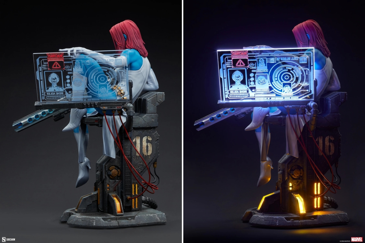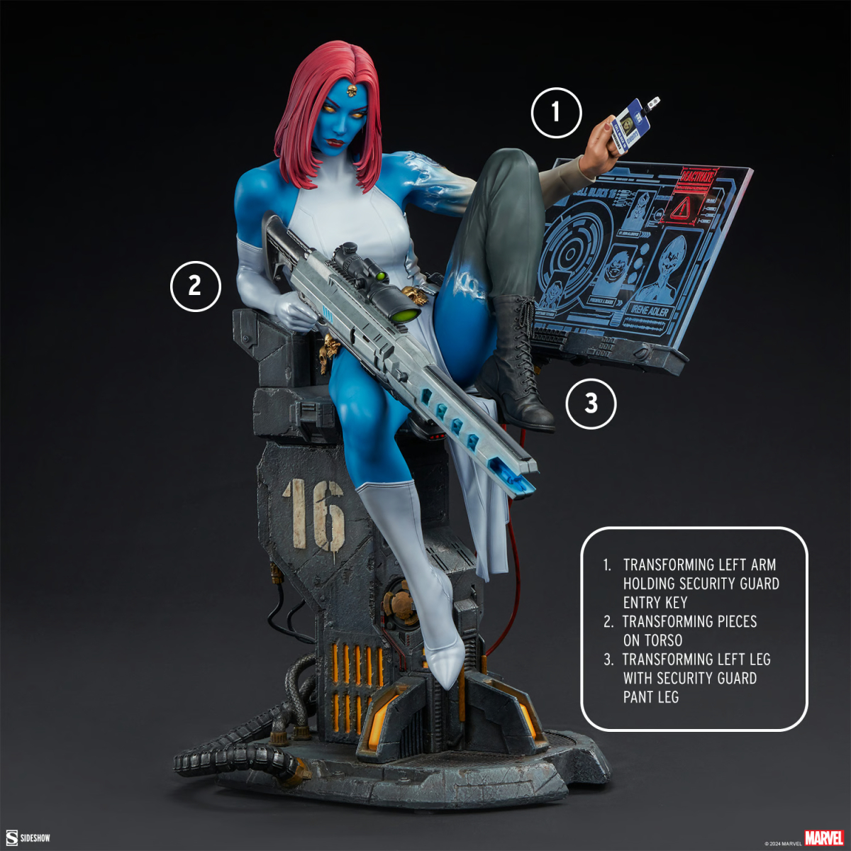 本作高約 39 公分,設定上是一次大膽的救援行動,看起來游刃有餘的魔形女坐在崔斯克工業(Trask Industries)的機器上,右手拿著一把重型步槍、左手則是放在顯示螢幕上,傳達出駭進崔斯克工業電腦主機、拯救變種人同伴的故事情境。熟悉 X戰警的玩具人還能在螢幕上看到火人(Pyro)、肉球(The Blob)、蟾蜍(Toad)以及命運女(Destiny)艾琳·阿德勒的檔案。