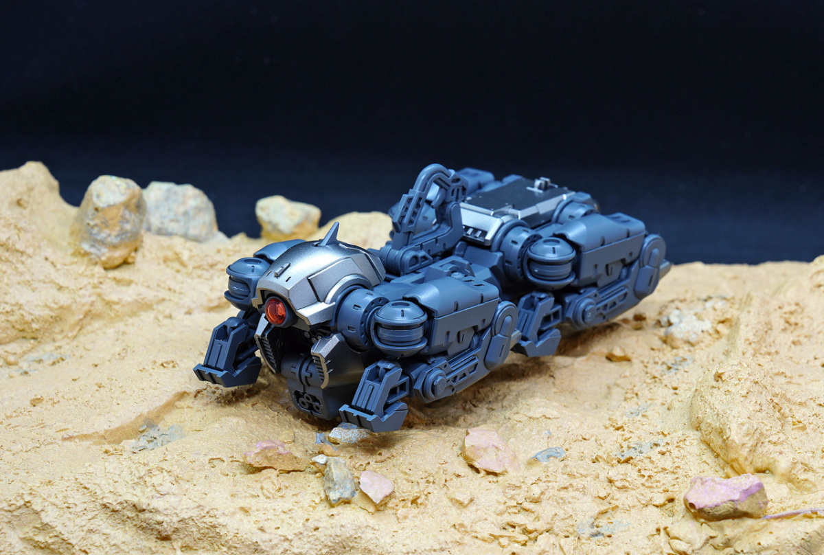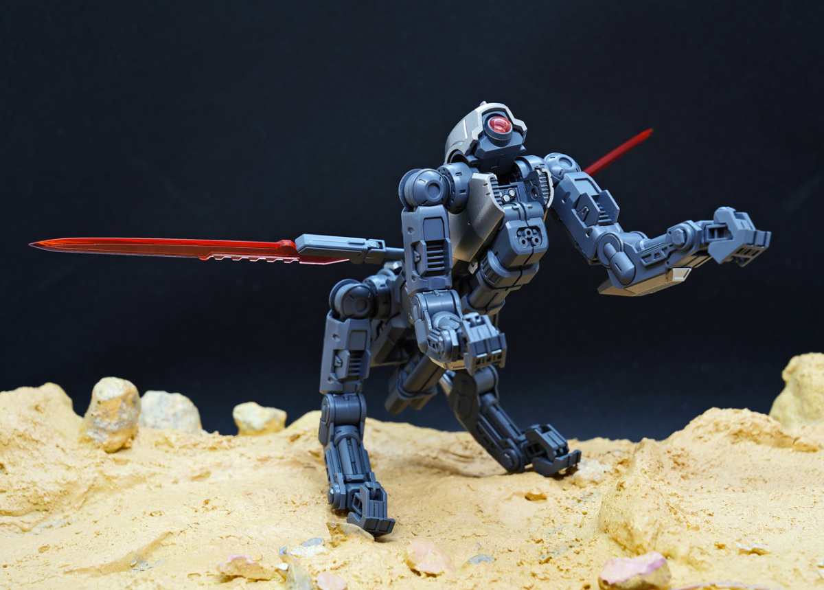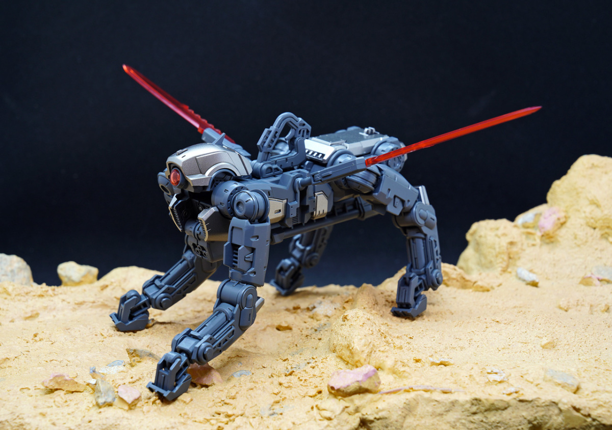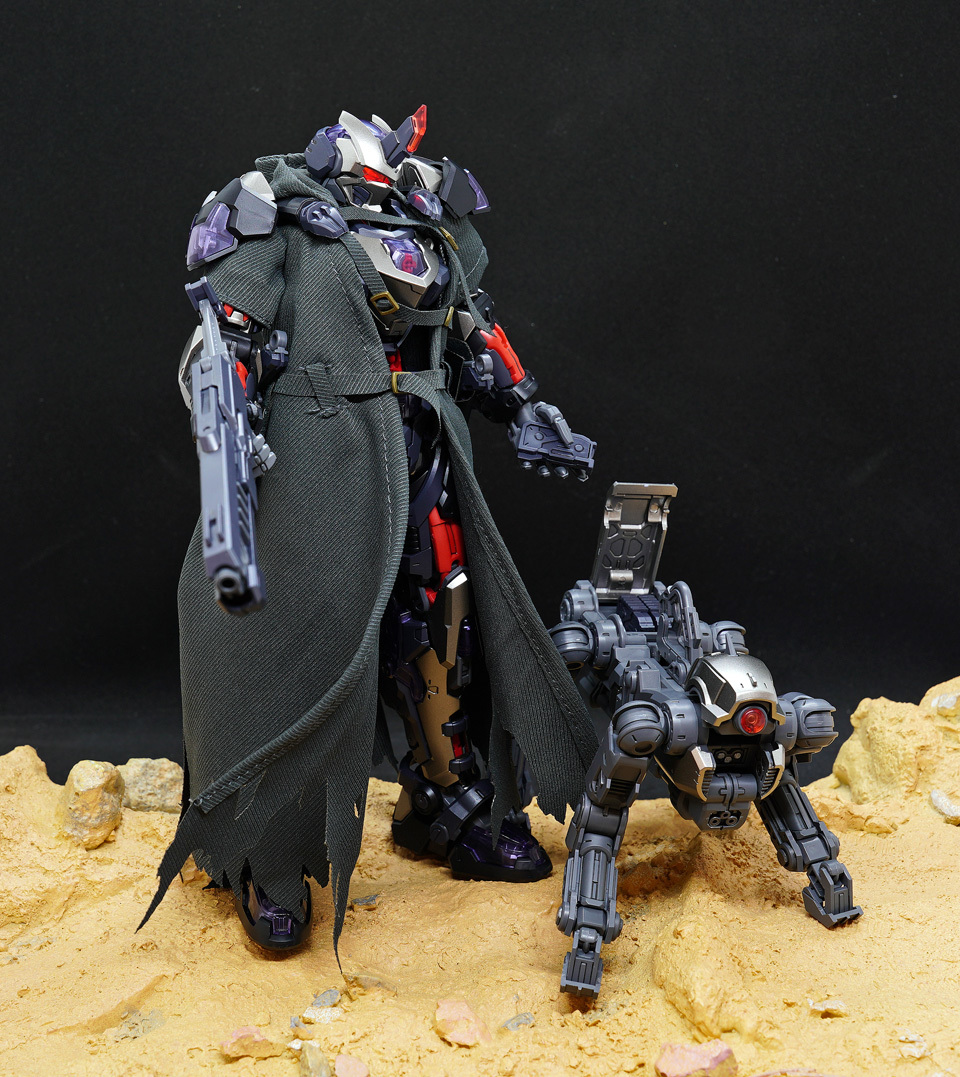 塔斯提爾的可動性高得無話可說!原因是他的設計本身賦予他與人體沒異樣的可動性,而軟膠的使用令到任何主關節屈曲的時候沒有任何障礙,關節鬆緊度理想。另外值得分享的是他的可玩性!主體,機械犬及台座的互動及變化多端!單體的觀賞性已經很高,而當配合機械犬及台座收納架時更有很多讓你發揮創意的地方!這種玩法在 Diaclone 比較常見,而現在他亦和 30ms 系列一樣,有很多擴展性及互換性在組件中讓你發掘出來,真是一件可怕的傢伙!
