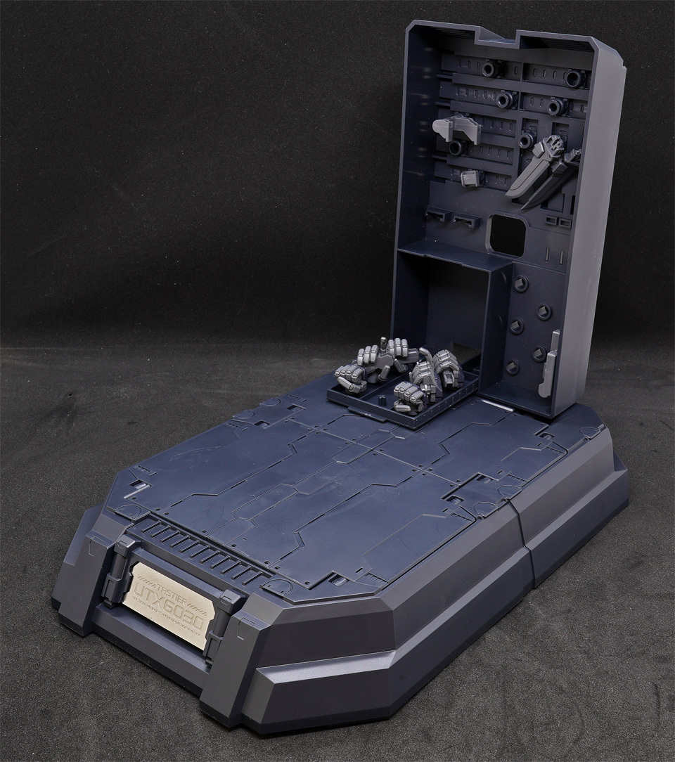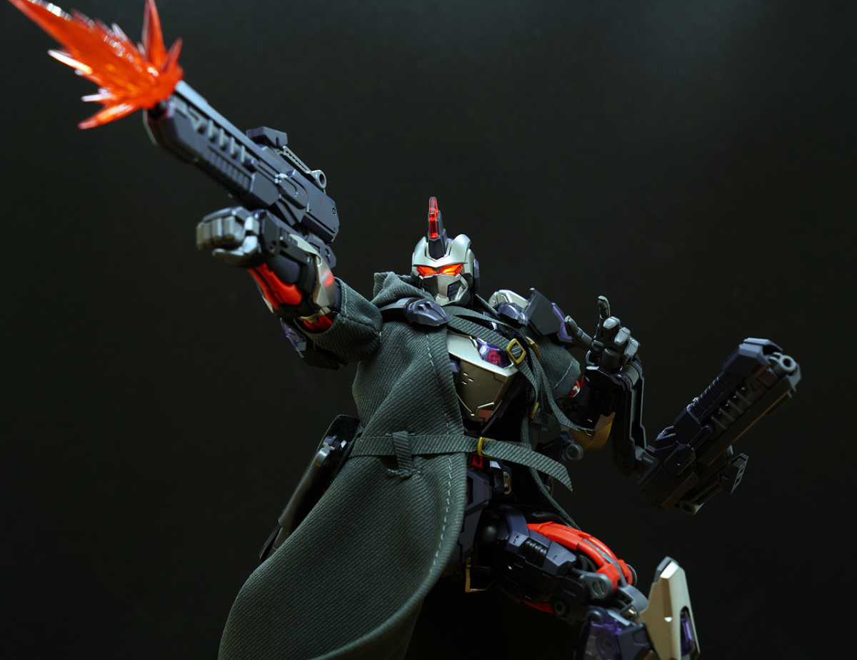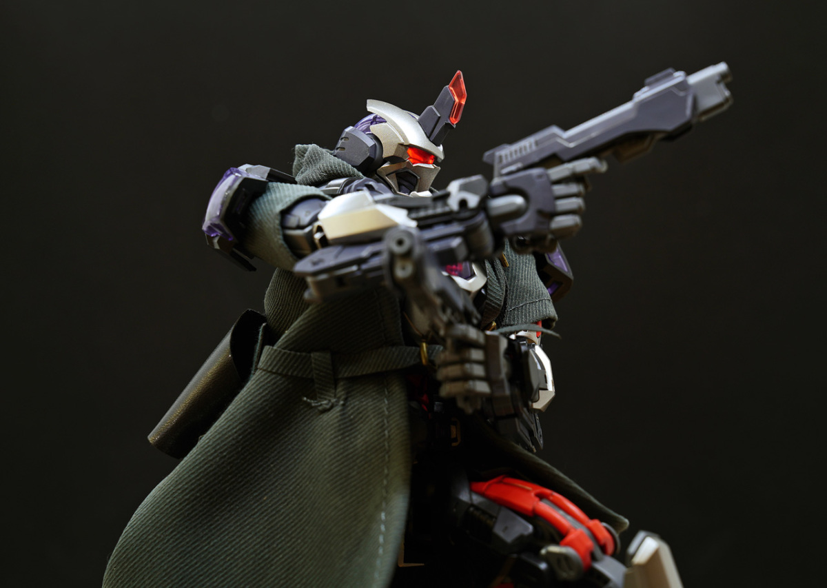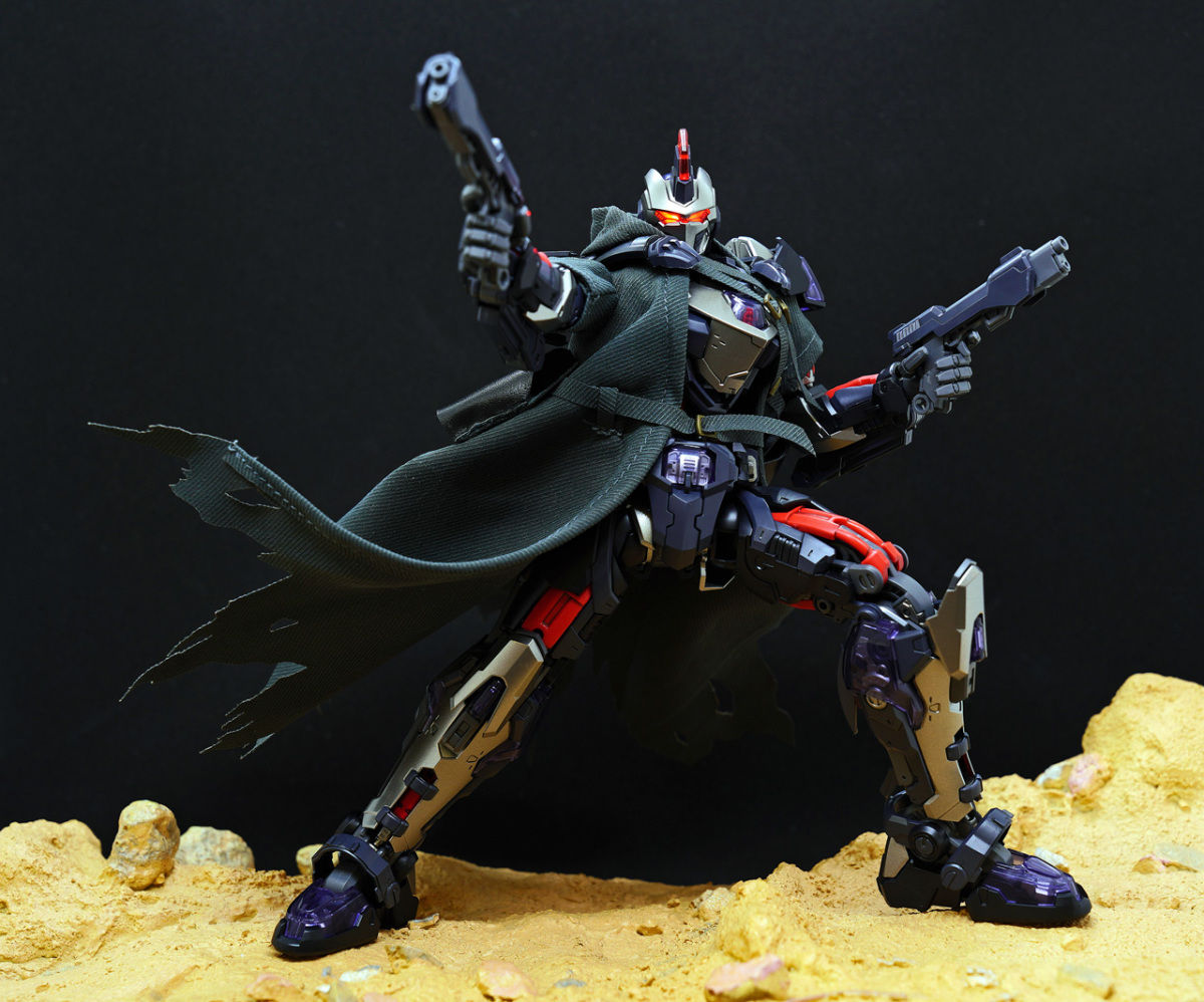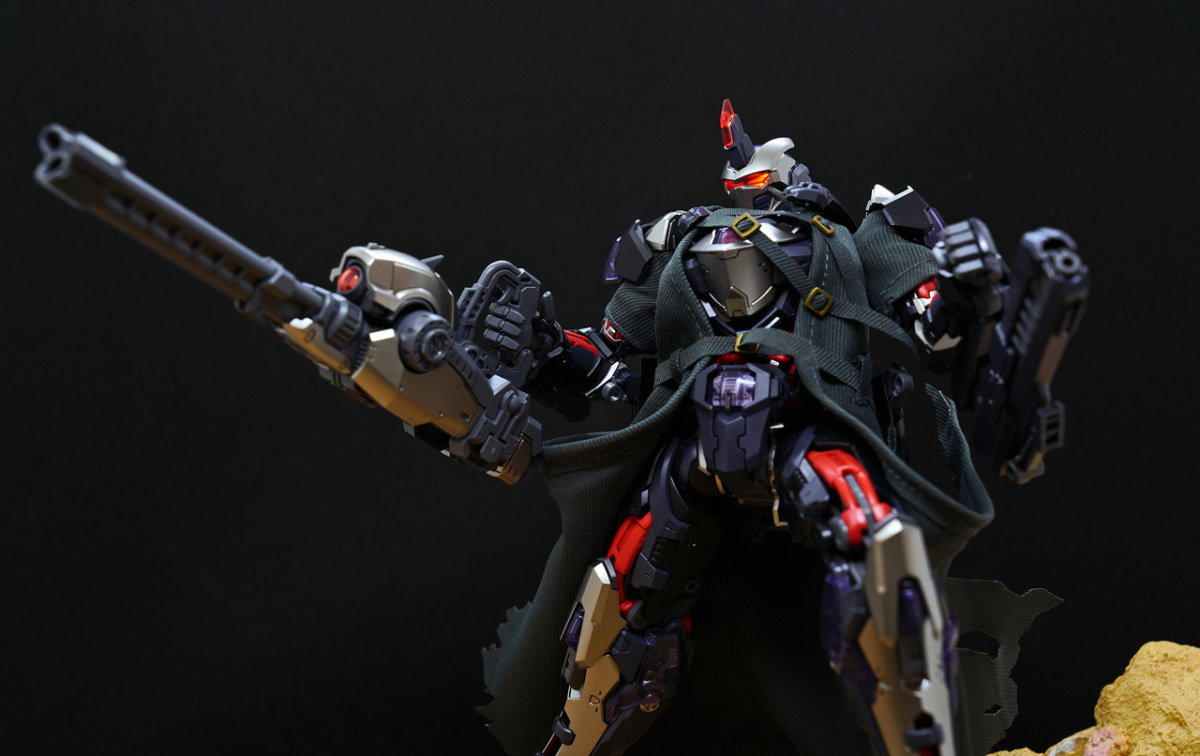 裝組方面他的技術與 Bandai 基本上沒兩樣,而肯定比壽屋及 Moderoid 更勝一籌!湯口位如果不是隱藏式的話亦盡量在一些不顯眼的地方出現。裝組時亦沒有什麼 “大力金剛指” 的情況,連骨架也用上隱藏水口這一點真是有點過份...... 零件非常細緻,基本上素組的話亦沒有什麼問題。如果花點時間渗線效果會更加吸引。開盒時你會感覺到廠方的誠意!一般模型不會有那麼多額外的東西給你,例如蝕刻片,角色貼紙,立架或其他與產品相關的附屬品...... 如果你玩一般模型通常只會得一份說明書及水貼,這一點已經和成品玩具沒異樣。 然而在雞蛋裏挑骨頭的情況下,我覺得廠商可以留意以下幾樣東西:說明書內台座組件編號有小問題;頭部著燈開關組件接觸位置需要改善;另外如果肩關節橫軸加長少許,在著上斗篷的情況之下兩肩接合會更加牢固!