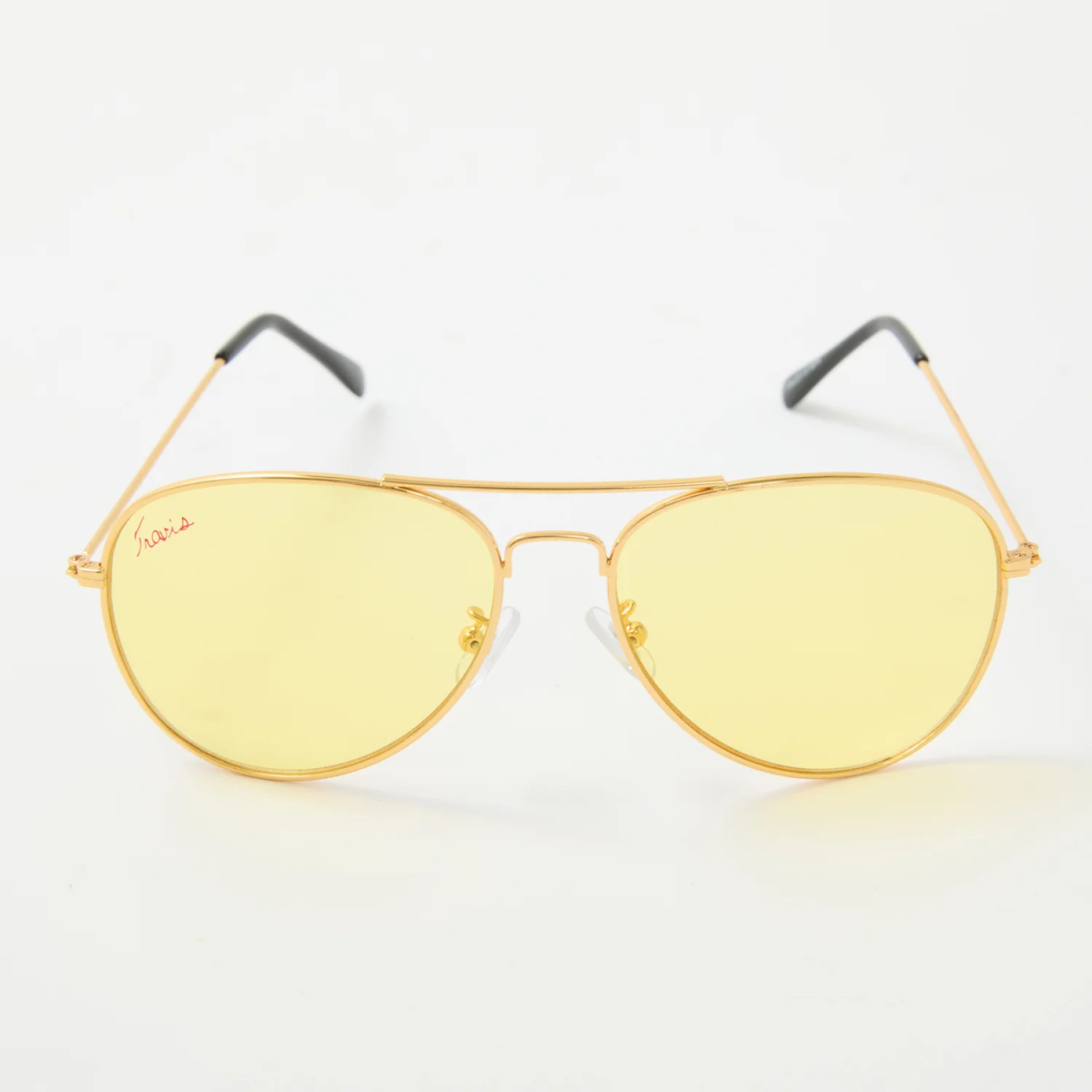 以特拉維斯愛用的太陽眼鏡完美還原的原設定的樣貌,招牌的飛行鏡框搭配琥珀色的鏡片,金色的鏡架呈現出帥氣的風格,還配有特拉維斯的簽名在鏡片上。另外附有專屬的拭鏡布,以遊戲中的畫面與體力條來呈現。