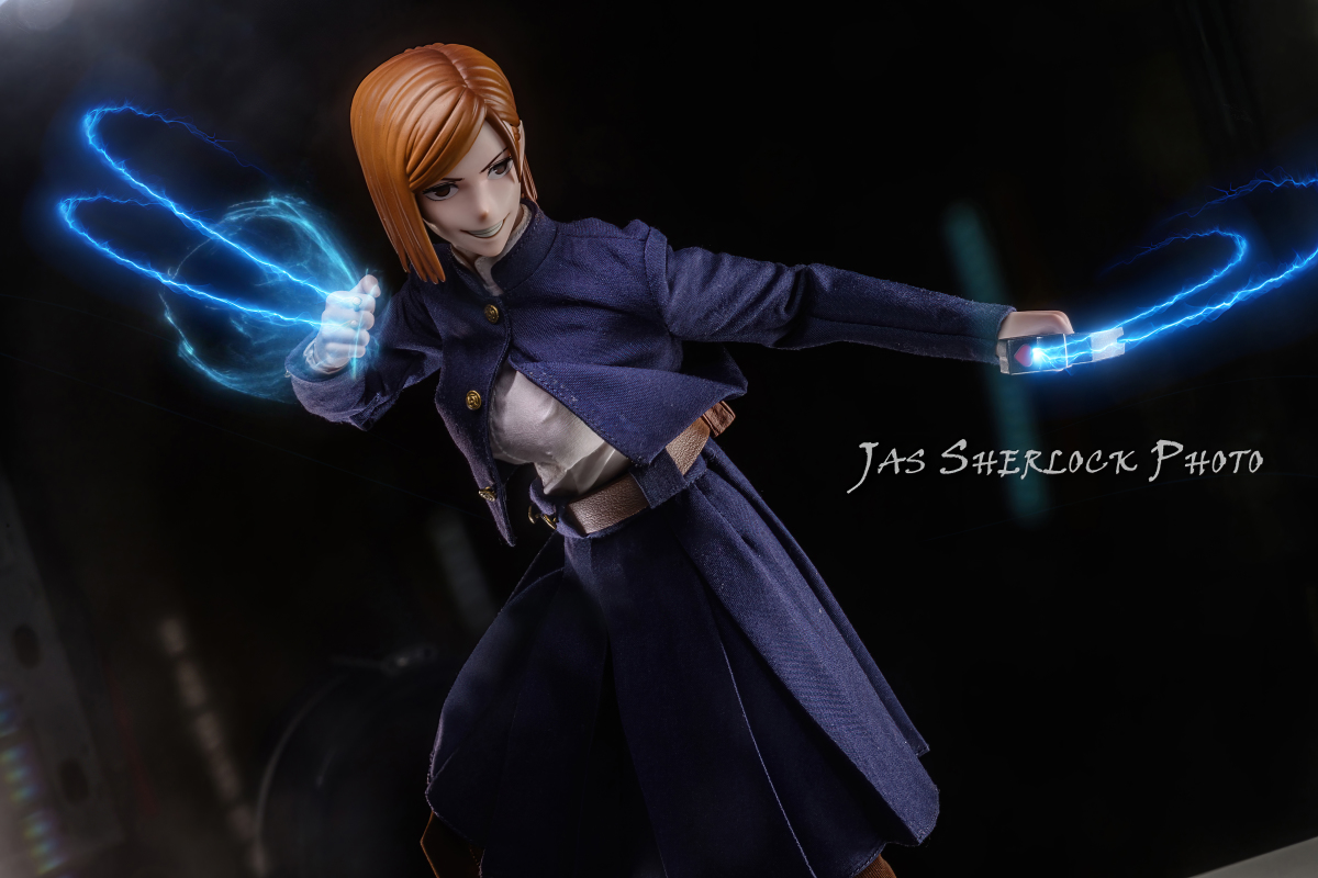 不過這個外套飛起來的感覺也滿有動態感的,索性就直接這麼拍起來了,好像也還行。不然這角色在擺POSE時候如果裙子或衣服沒有內裝軟鐵絲之類的東西的話,在拍攝上也是會有點點少了點,如果能有鐵絲來凹出造型的話相信會讓畫面更加分許多~