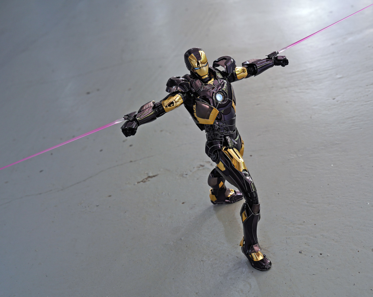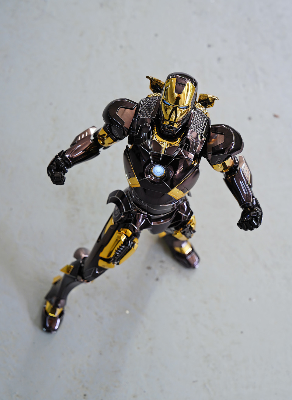 此外,人偶全身兼備多項武器裝備,包括結構精細的肩膊隱藏式導彈炮、前臂微型導彈發射系統、腰側圓盤內藏誘彈裝置、仿激光雷射配件,再附上多組可替換甲件演繹發射飛彈的攻擊形態,還原 Mark VII 的戰鬥力。此外,胸甲採用可拆卸裝置、背部擾流定風翼及腿部裝甲更備開啓功能,展現出複雜精緻的內部機械結構。附隨一個特別設計人偶地台,加設 LED 亮燈裝置並注入電鍍黑金色塗裝元素,呼應了珍藏人偶的整體奢華風範!