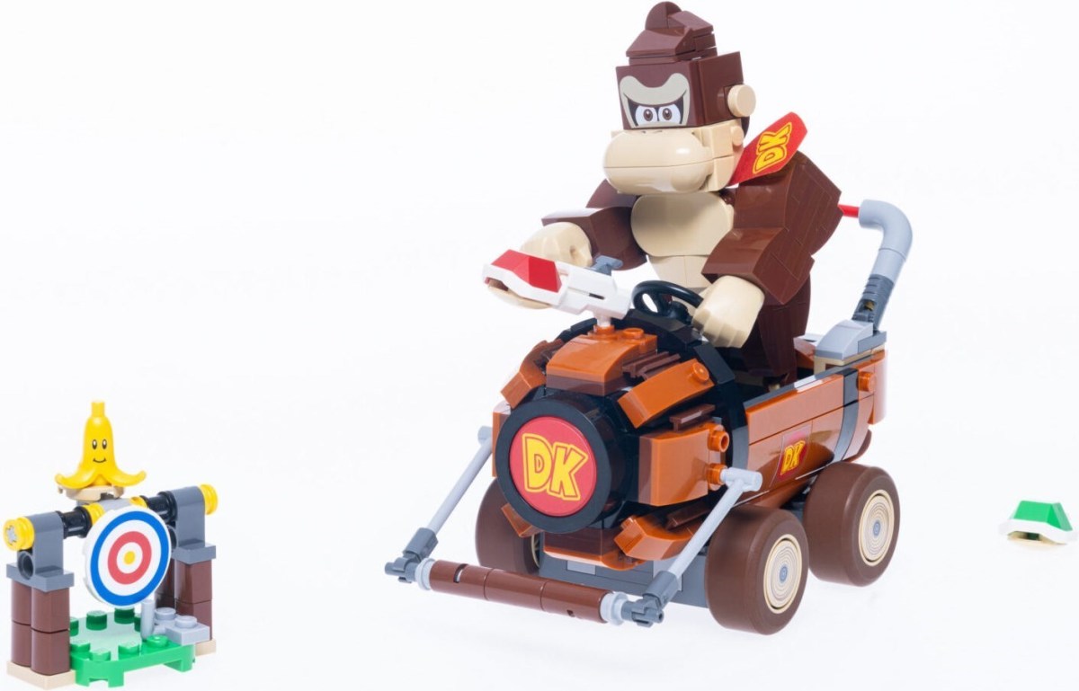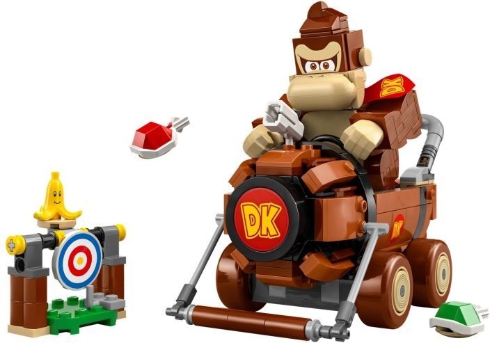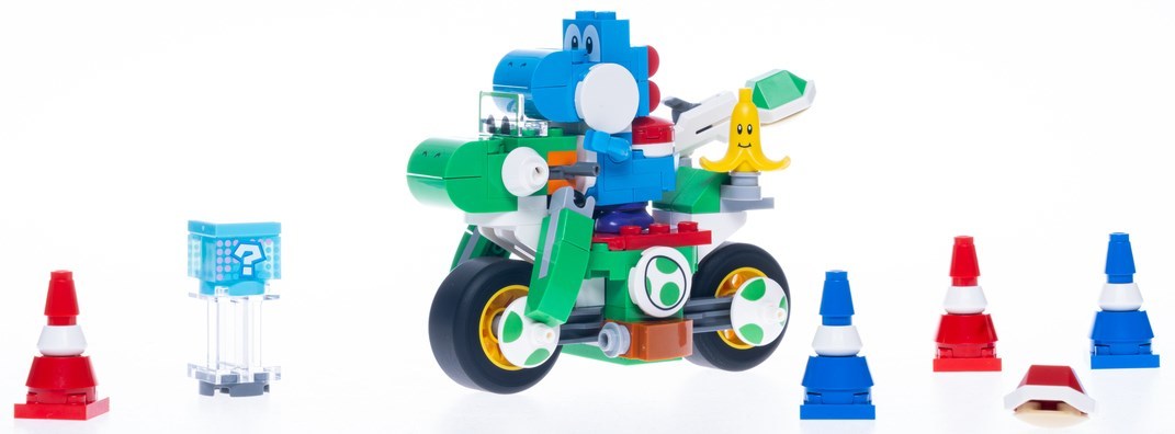 這次的車輛包含耀西摩托車、經典款的卡丁車、飛行瓢瓢、毛毛蟲車......等,而從官圖也可以看到遊戲中那些令人又愛又恨的道具!像是香蕉皮、紅色烏龜殼、綠色烏龜殼,新規製作的烏龜殼則可以利用子彈彈射裝置進行發射,而在 72036 這款最大的盒組中還可以收集到球蓋姆,真的好讚~!