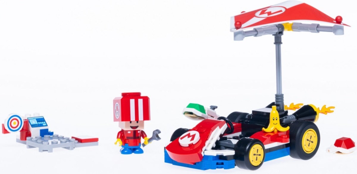 根據目前 LEGO 釋出的情報,這次瑪利歐賽車系列的盒組不只可以讓你親手堆砌出遊戲中各式各樣的經典車輛、角色,最大賣點肯定是能夠與《樂高超級瑪利歐》商品系列的冒險主機:瑪利歐、路易吉、碧姬公主這三款進行聯動!只要把冒險主機放入駕駛座,就能發出瑪利歐賽車電玩裡的經典音效,包含開始比賽、喇叭、經典的甩尾音效......等,而在冒險主機上的小螢幕應該也會顯示對應的畫面,加上磚拼形式的賽車、維修站、終點,相當令人期待!