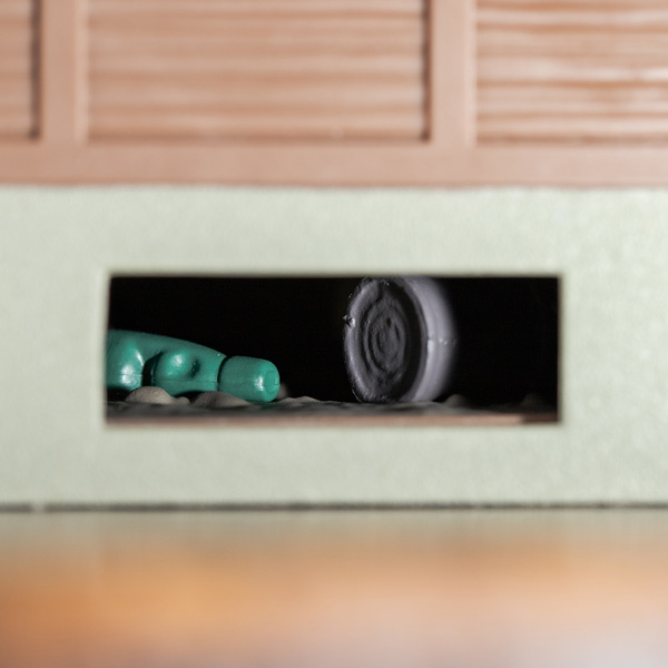 ▼小龍貓逃往地板下...如果用小梅的角度蹲下來看,可以發現藏在底部的空罐頭和汽水瓶,或者,可能有其他的東西躲在這裡?