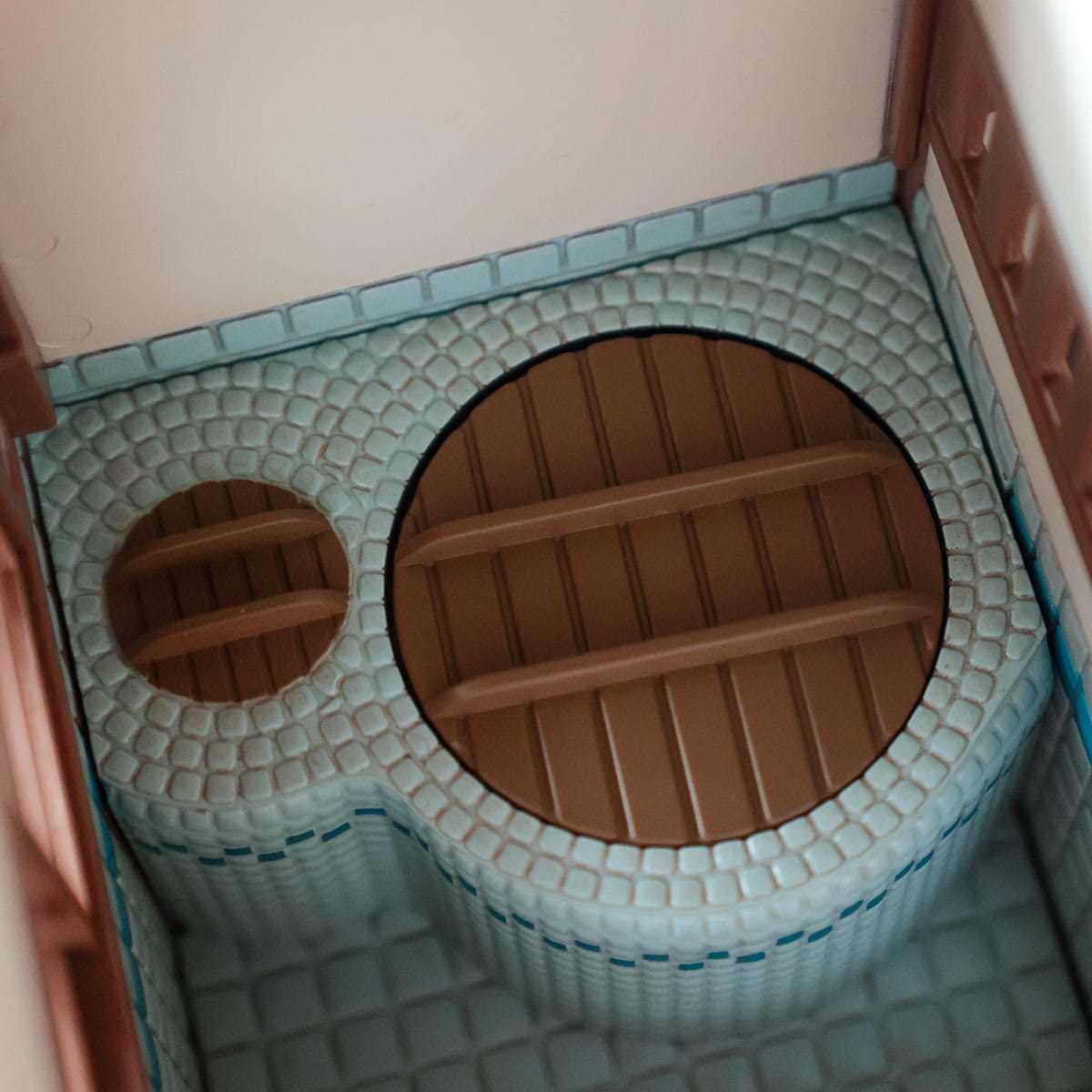 ▼浴室裡鋪著可愛的瓷磚,感受到復古純樸的氣息~浴缸的蓋子也可以掀開,讓人想到一家人一起泡澡的場景!