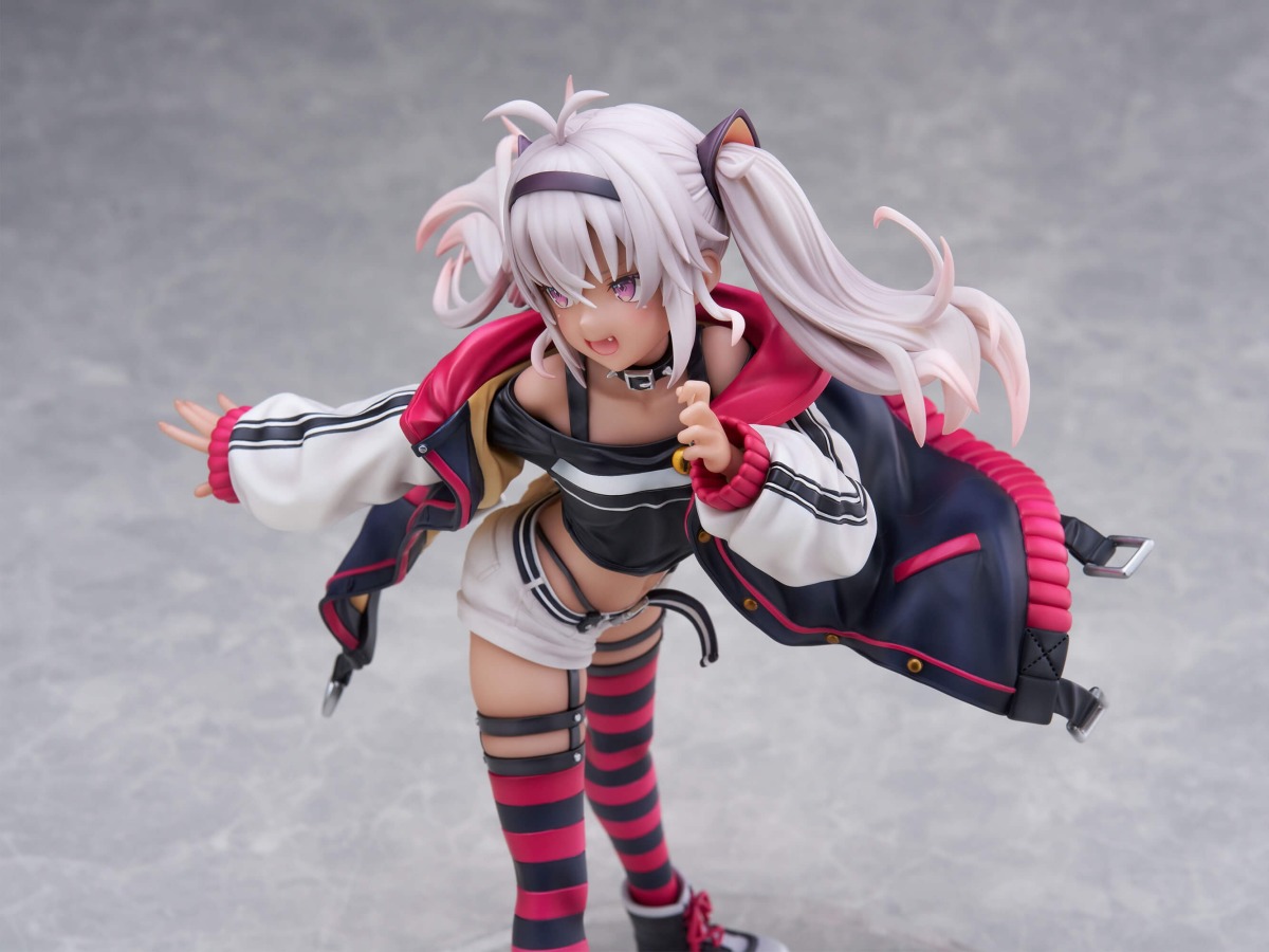 F:NEX 推出的「魔使真央 1/7比例模型」基於插畫家 Mokyu(もきゅ)繪製的官方形象插畫製作,將可愛的通常服裝造型立體化。無論是姿勢、從貓耳竄出的雙馬尾髮型、OVERSIZE 的外套都具備極為躍動的造型,充滿魅力的五官也再現了有些調皮的眼神、可愛的虎牙等細節。