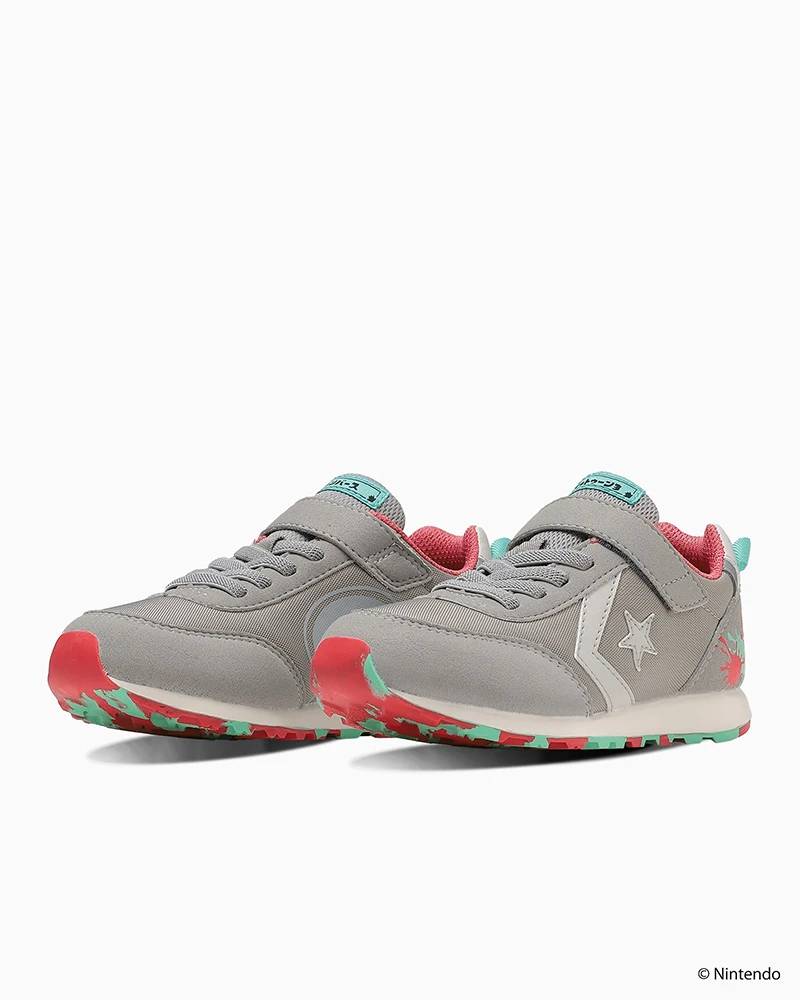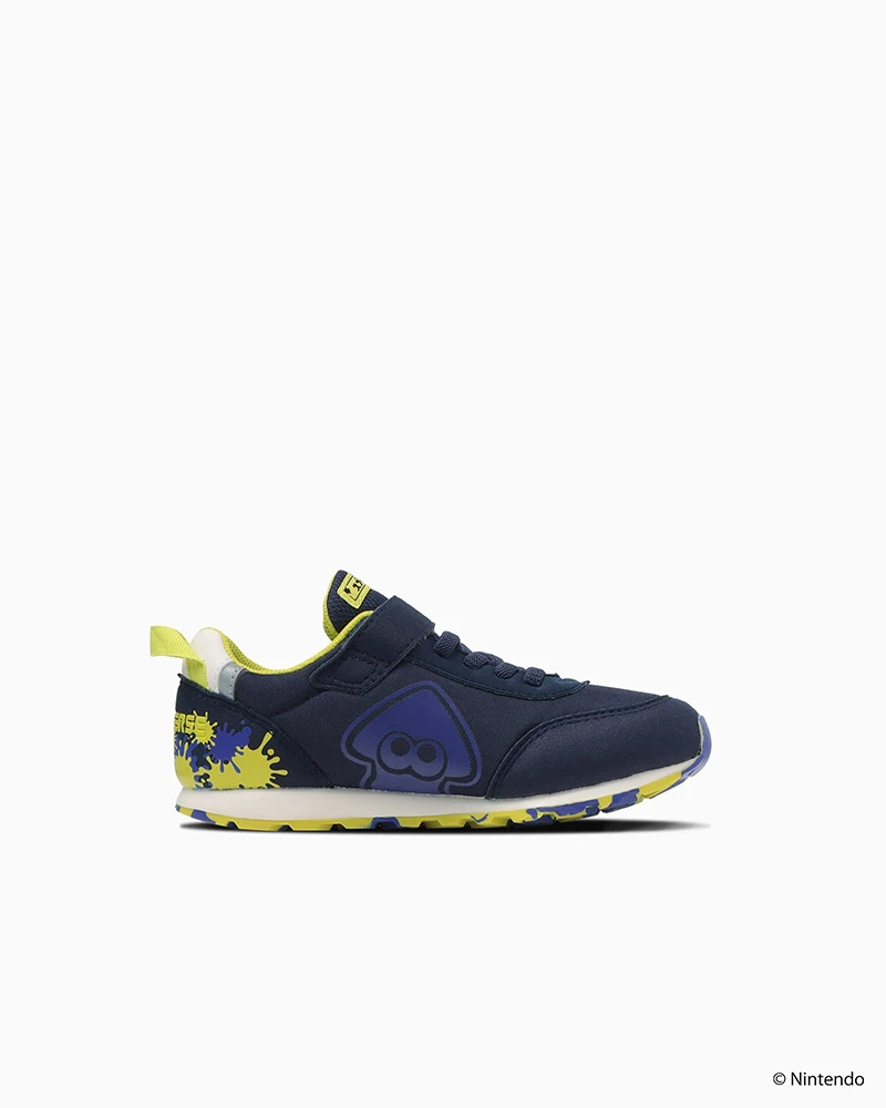 這款為兒童鞋款,採用魔鬼氈綁帶方便穿脫,兩款海軍藍 / 灰色都融入的遊戲的噴漆風格,鞋內側還配置了招牌角色烏賊的圖案。