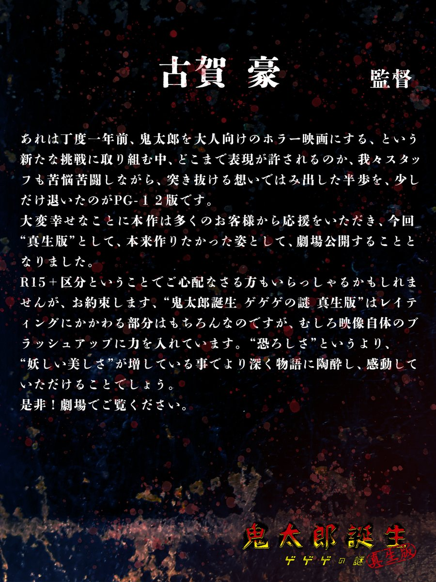 對於本次「真生版」的推出,古賀豪導演表示,本來這部作品的目標客群就是給大人看的,其實這版本也是「製作組最初設想的恐怖故事」。特別增加恐怖分鏡、並修正呈現出比起讓人恐懼、更能徜徉在妖怪之美的情境。