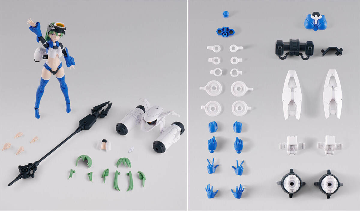 配件則附有 3 種印刷完成表情、3 種髮型、2 種胸部服裝等,以及包含波塔諾瓦(水中戰規格)零件、增設裝甲、一般胸部裝甲、多種造型手掌在內的改裝零件組,能為 NAUTILICA 變化更多樣的外觀、武裝造型。