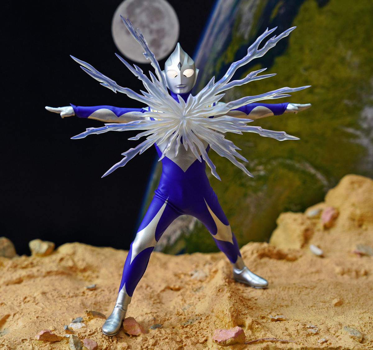 超人迪加內藏 42 個可動關節,使用拉賈布料 (LYCRA),跟真實皮套人材料一樣,解決容易爆裂問題。主體及鞋以人手包布方法製造,令皮套展現真實效果。腳低利用磁石固定方法,方便擺出不同造型及增加靈活性,提高玩樂樂趣。另身體內藏 LED,跟原著一樣有 3 分鐘燈效效果 (由藍轉紅),利用變身器磁控控制,操作簡易。另附上光線發射時的特效件,並採用幻彩噴漆增加了立體效果。