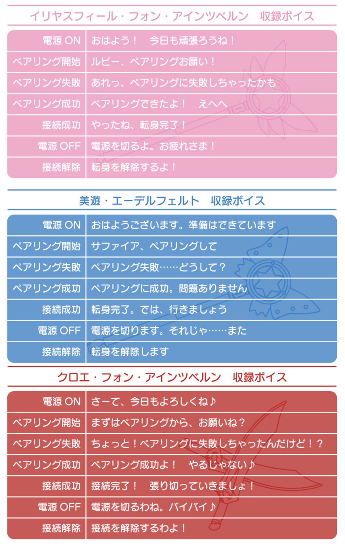 少不了的就是提示語音囉 ! 收錄了三位人物在動畫配音的聲優所錄製的專屬語音,不論開啟電源、啟動連結都有角色語音在你耳裡,讓你能有角色陪伴在你身邊享受音樂。