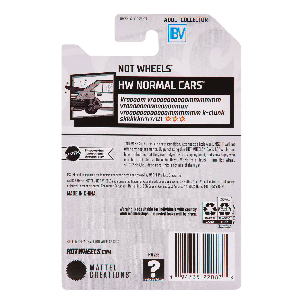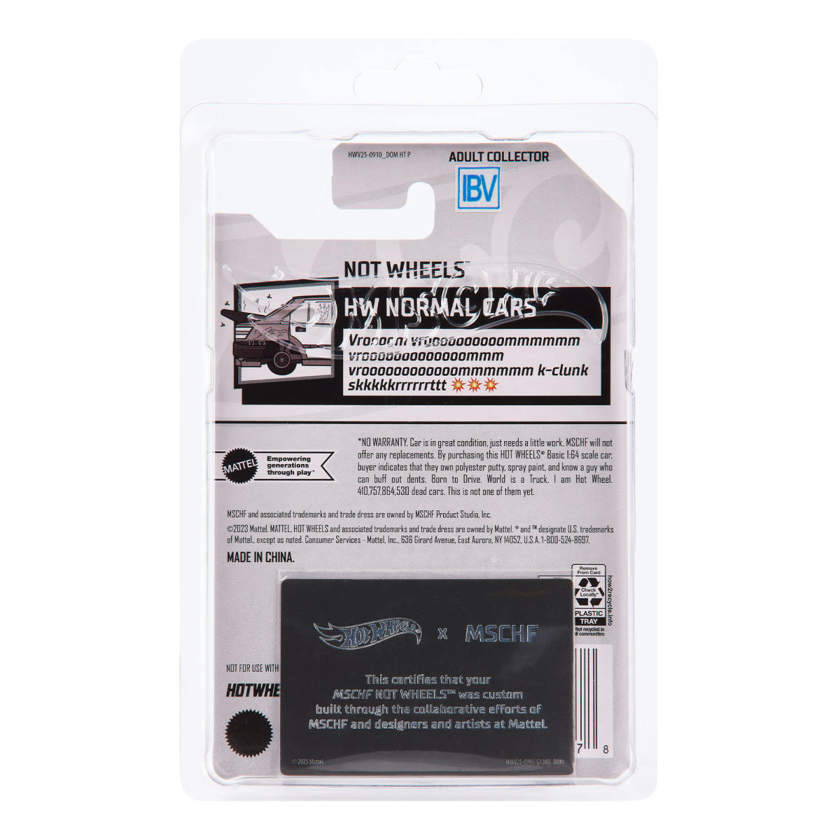 吊卡部分當然也是有著滿滿的彩蛋!經典風火輪 Logo 上的 Hot Wheels 字樣被 MSCHF 取代,在側邊加上了「Not Totaled Yet」(尚未報廢)標示,因為少了一顆輪子所以還特別標注了「Clinder Block Not Included」,說明不會附上用來支撐的煤渣磚。背面先是附上了一段充滿各種車子噪音的狀聲詞來介紹這台「普通的車子」,下方的文字敘述繼續補充寫了「本車的狀況良好,只是需要一點小整理」、「不適合擁有高爾夫俱樂部會員資格的人購買,會被給予異樣的眼光」等幹話滿滿的細節,超級有趣!