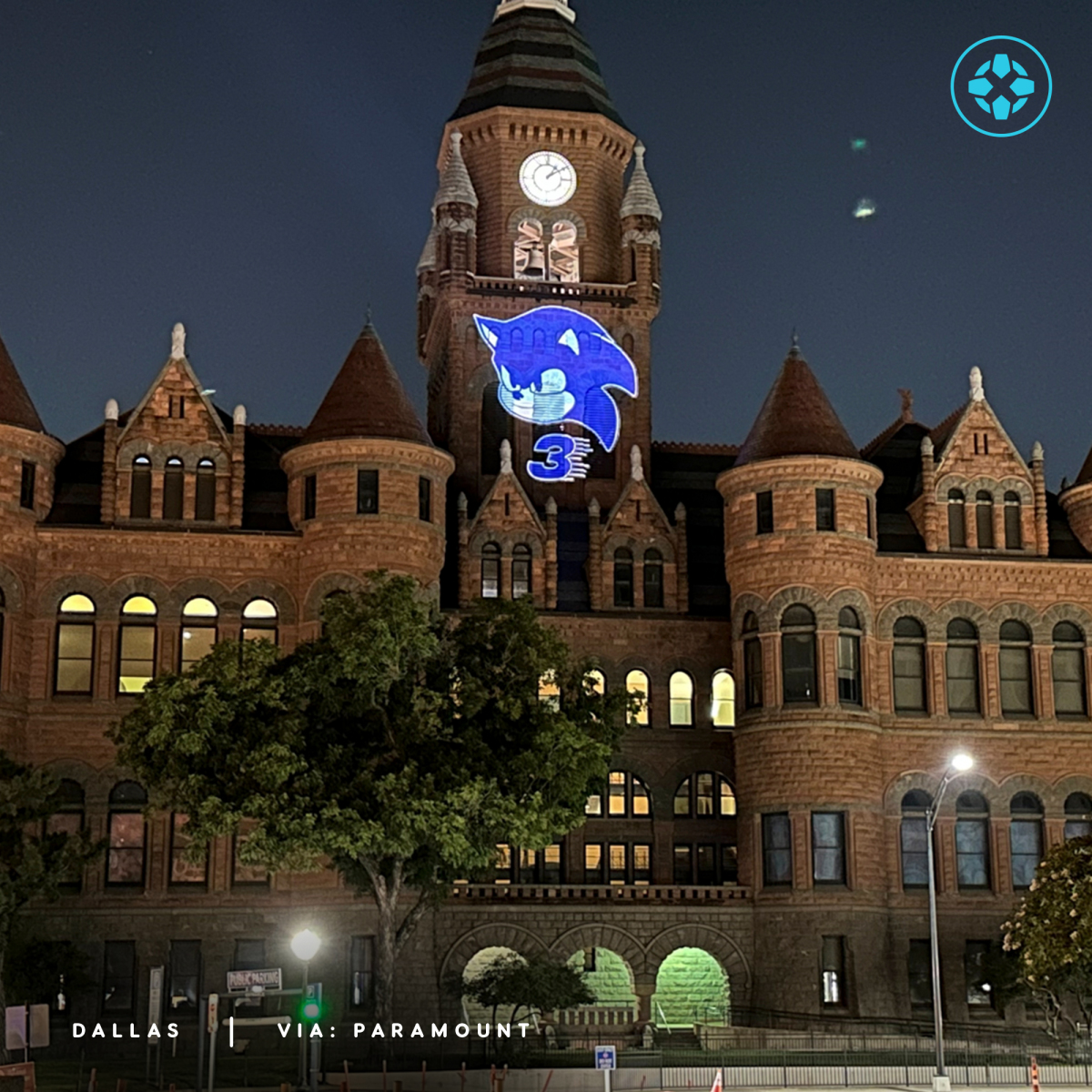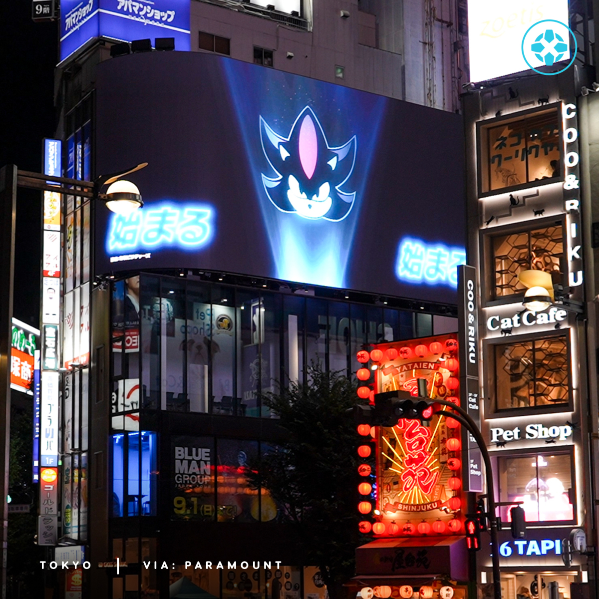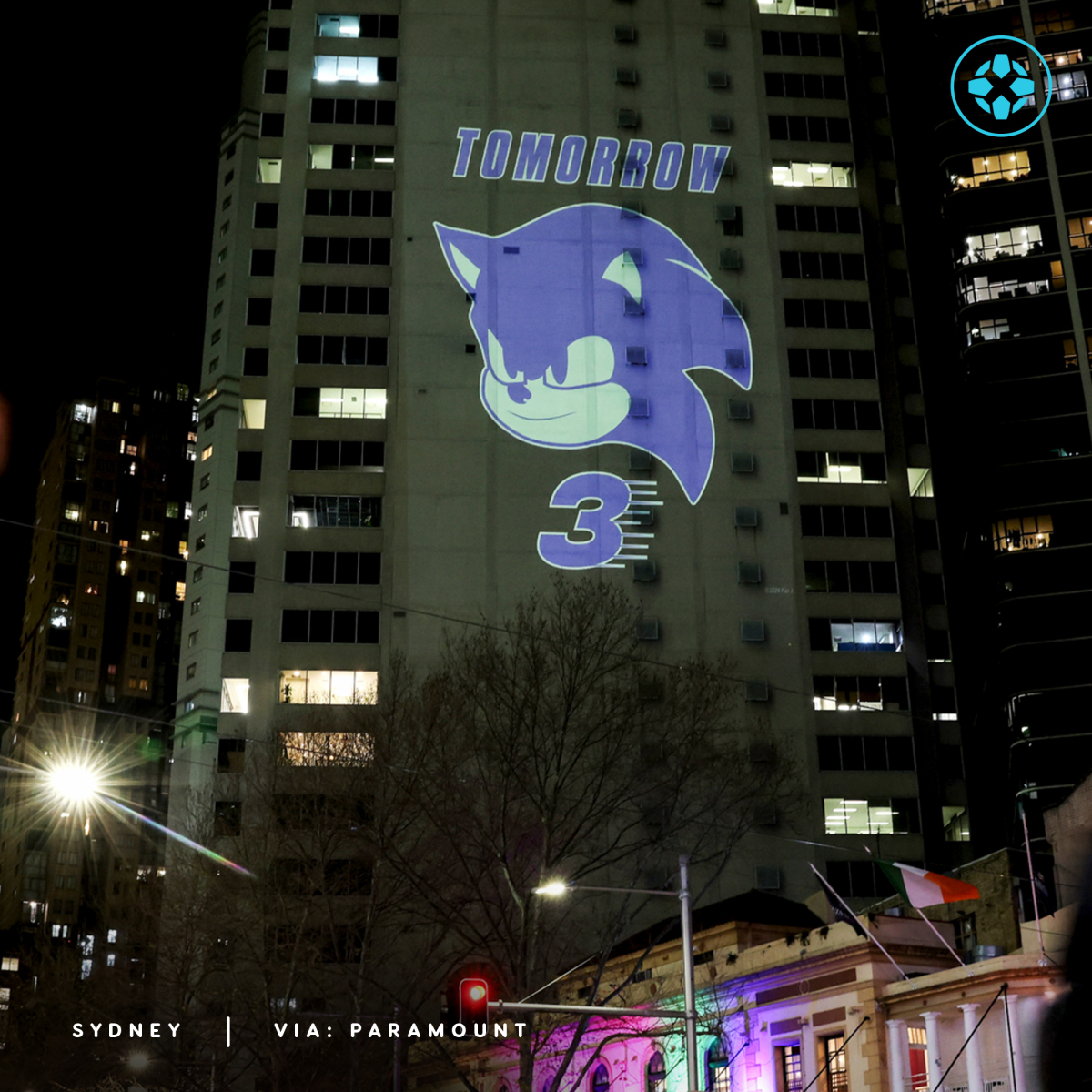 從外媒所整理的各國包含日本、西雅圖、芝加哥、舊金山...等景點,都在這些景點的象徵建築物上,利用投影的方式照射出登場於《音速小子3》電影中的「音速小子」索尼克、蛋頭博士,還有老粉絲最期待的「夏特」...等熟悉角色的圖像,而這些頭像底下都寫著一個大大的「3」,意味著即將進入第三部電影。