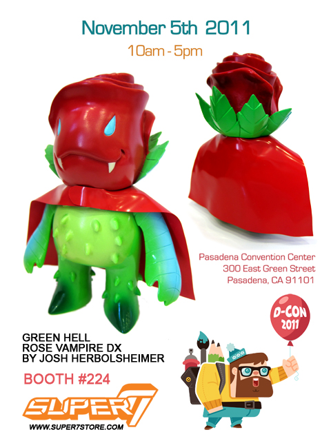 很喜歡圖像設計師Le Merde筆下繪製的有點可愛又奇特的怪物角色,這次的Mossy Rocks Burgerbuns將於Designer Con 2011 Super7 的攤位販售,相信又會造成喜愛Le Merde作品的朋友們搶購,另外下方第二張圖是設計師Josh Herbolsheimer所設計的的Green Hell Rose Vampire DX版本,也會於Designer Con 2011展覽的Super7攤位販售,買Green Hell Rose Vampire DX將附贈一張Rose Vampire的迷你複製畫作,Mossy Rocks Burgerbuns和Green Hell Rose Vampire DX販售價格各約65元美金。