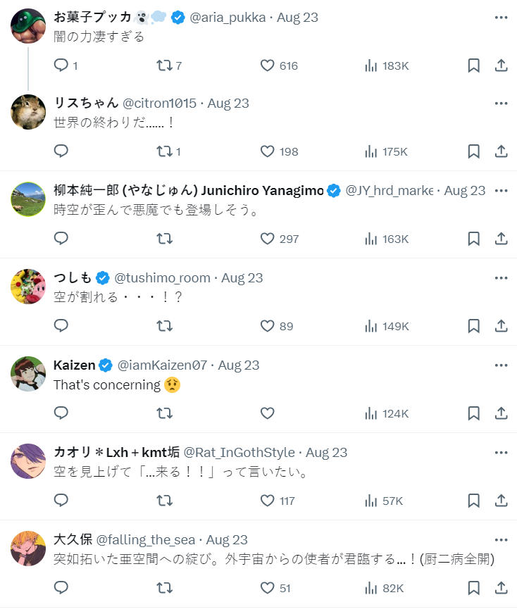 不少網友也對此到好奇,為何會有這種彷彿魔界大門開啟的樣貌,又像是《薩爾達傳說》系列遊戲中的「血月」場景,有太多遊戲或動畫場面都有這樣的味道,只是通常都是災難來臨的前兆。