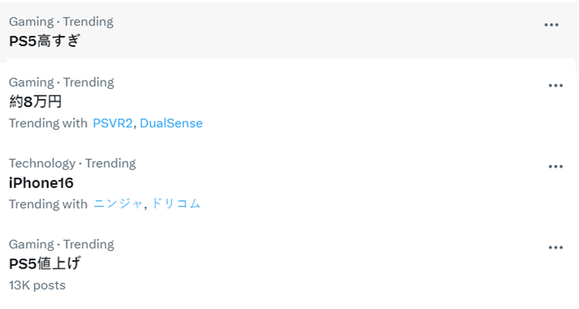 ▼ 「PS5 漲價」、「約 8 萬日圓」、「PS5 好貴」成為今日下午 X 趨勢關鍵字。