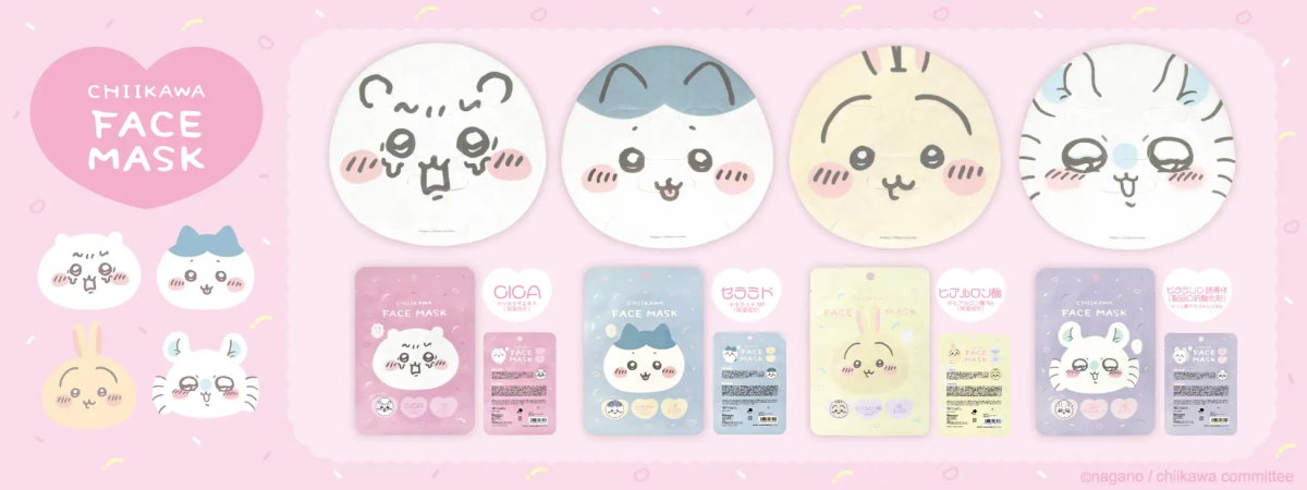 近日日本美妝品牌 SHOBIDO 粧美堂宣布,將與《吉伊卡哇》合作,推出以角色臉龐為設計的面膜,釋出四款供消費者選擇,讓你的保養工作可以有小可愛陪伴。售價為 495 日圓,即將在 8 月下旬日本各地通路開始販售。