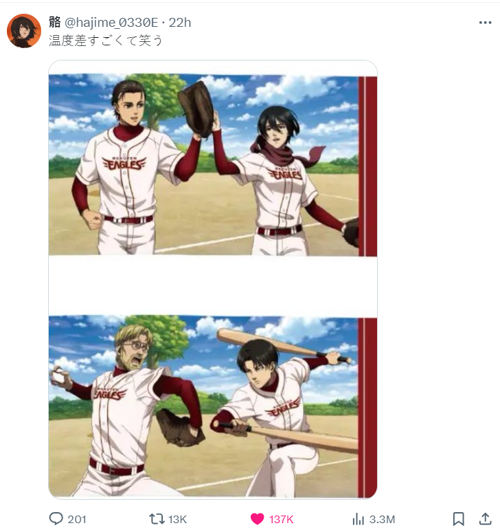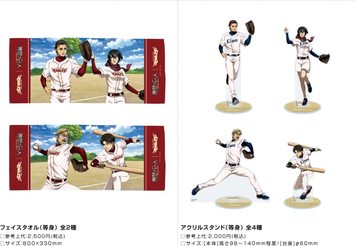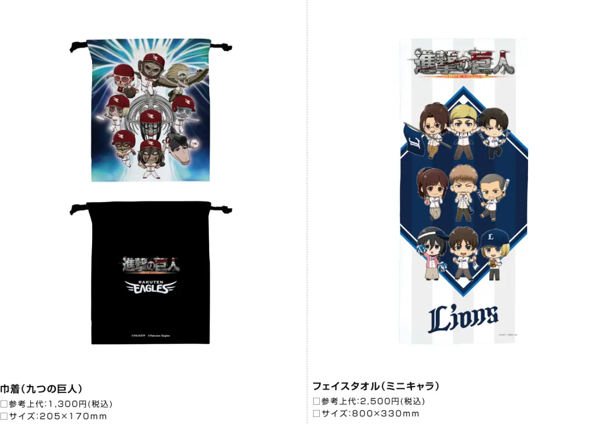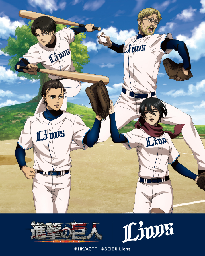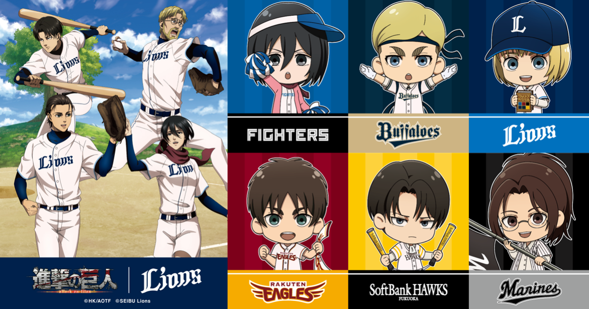 近日日本職棒太平洋聯盟宣布,將與諫山創所創作的作品《進擊的巨人》合作,將會有合作企劃的球衣與周邊商品期間限定販售,並於 8 月 30 日西武獅主場迎戰日本火腿的比賽舉辦主題日活動,周邊則於 9 月 2 日起於各球團官網販售。