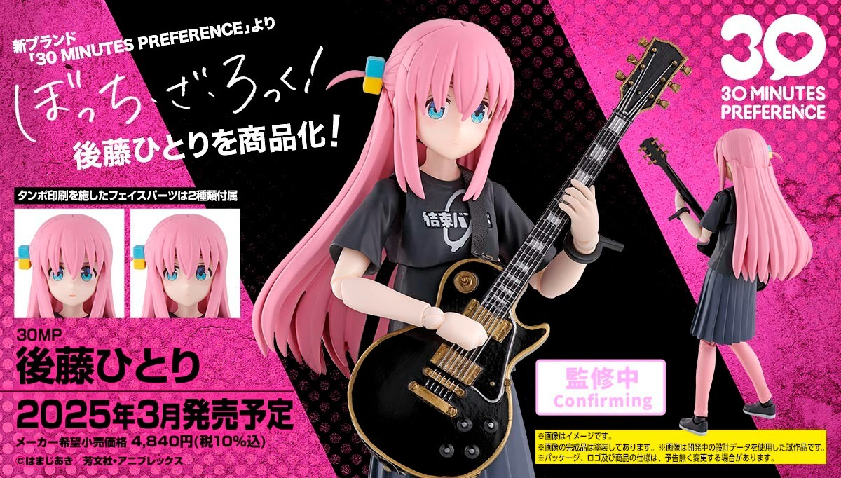 由日本 BANDAI SPIRITS 公司 HOBBY 事業部推出,主打讓模型玩家能夠輕鬆快速完成作品的『30 MINUTES LABEL』組裝模型,今日正式揭曉了第四款子系列『30 MINUTES PREFERENCE』詳細情報,並預告首款商品將推出人氣漫畫《孤獨搖滾!》的主角「後藤一里」,預計 2025 年 03 月發售。