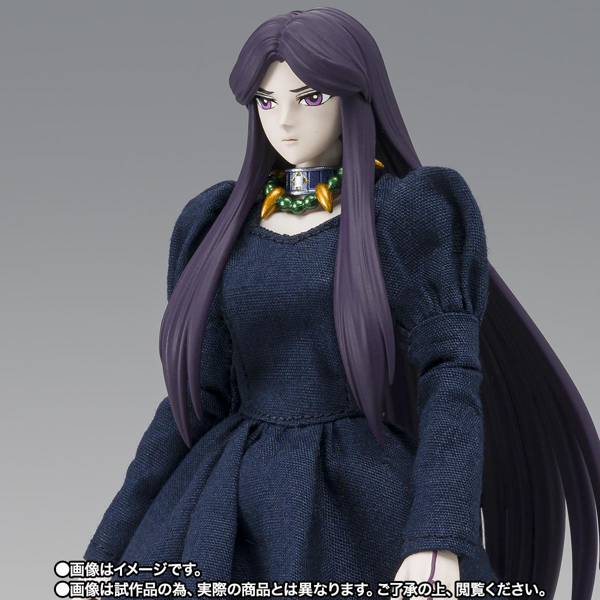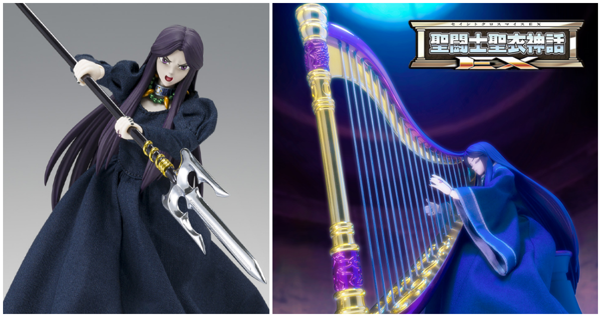 「聖闘士聖衣神話EX 潘朵拉」可動人偶,尺寸高約 16.5 公分,以完全新規造型重現潘朵拉特徵的黑紫色長髮與慘白無血色的肌膚,並採用布製還原優雅的公主袖黑色禮服與長袍,在項鍊與黑色的指甲等細節也仔細再現。附有幾乎等身高的豎琴大配件,並有搭配使用的座椅與替換手勢零件,能夠賞玩彈奏出死亡旋律的姿態。