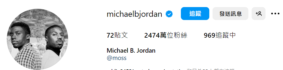 「金錢豹」麥可B喬登(Michael B. Jordan)則將個人帳戶的大頭貼換成了與鮑斯曼的黑白合照: