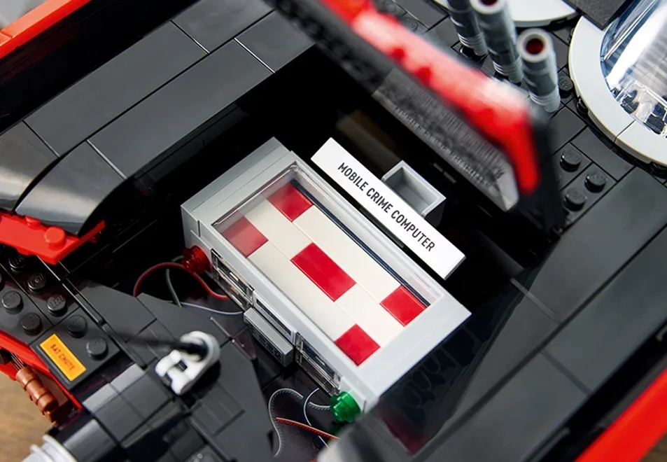 比起早先的「76188 蝙蝠車」或是「76052 蝙蝠洞」裡頭的那輛蝙蝠車,本次採用 1822 片零件打造成的新版本擁有更細膩的外觀還原與更完整的車體線條,組完之後全長來到 50 公分極具存在感!從經典的黑紅配色調性、特製的擋風玻璃、輪圈的蝙蝠標誌,到駕駛座的內裝細節、方向盤圖案都十分考究,而且全車大量修飾掉積木顆粒感,讓整體展現出洗鍊線條感,相當拉風。
