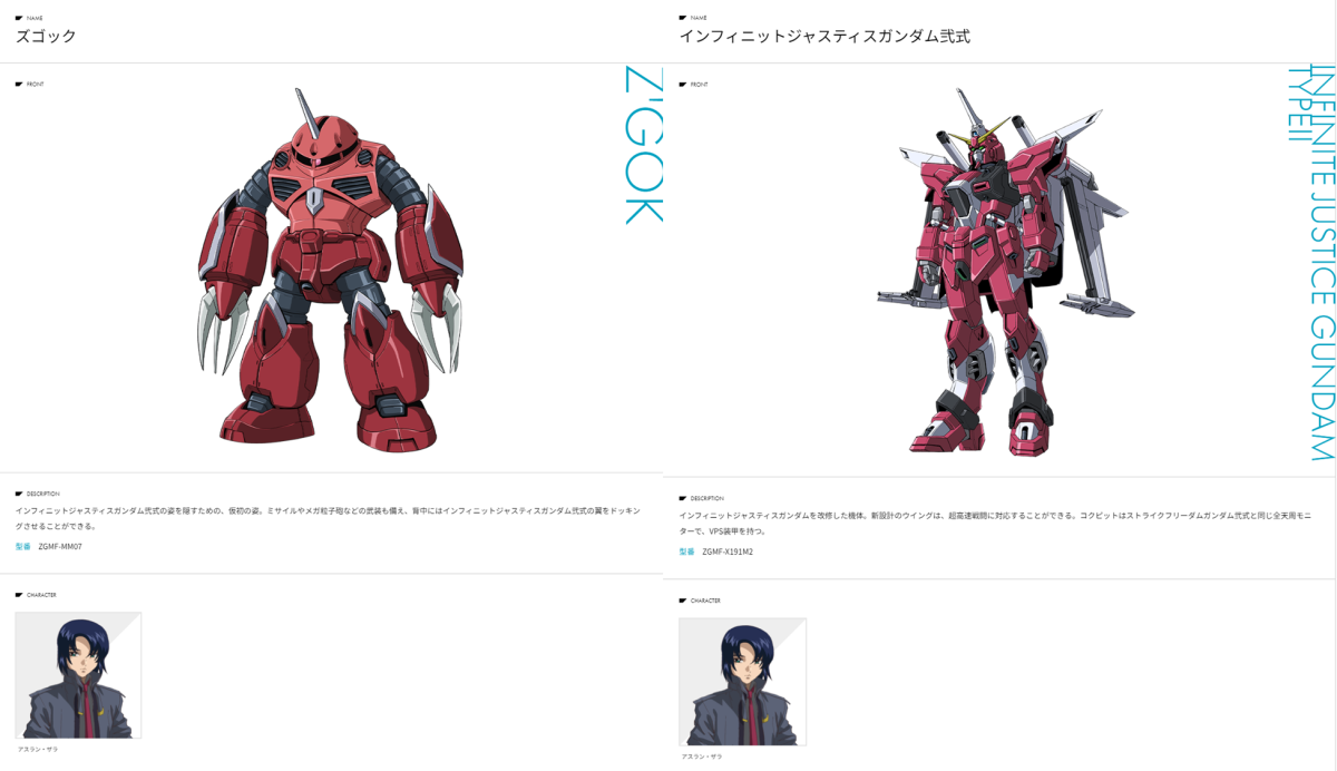 這架登場讓不少粉絲驚訝的話題機體「紅色茲寇克」,由阿斯蘭所駕駛,根據官方網站的機體設定,是為了隱藏新機體「無限正義鋼彈貳式」(インフィニットジャスティスガンダム弐式)所做的偽裝,將貳式藏在茲寇克的裝甲裏面,甚至還背有能對接貳式翅膀的背包。