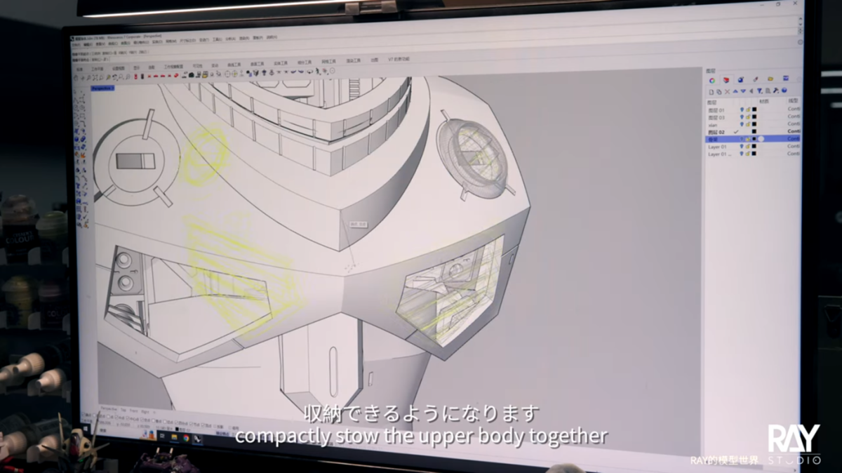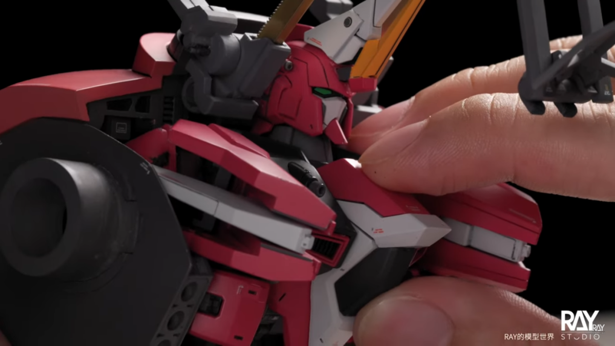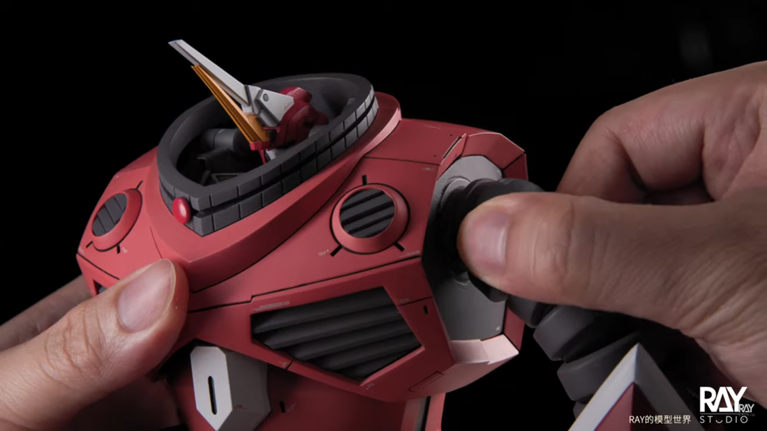中國模型師 RAY 團隊決定挑戰這個困難任務,他透過 3D 建模列印組件,成功將 1/100 的兩台機體,完完整整的嵌入在一起,展現出原作設定的風貌。