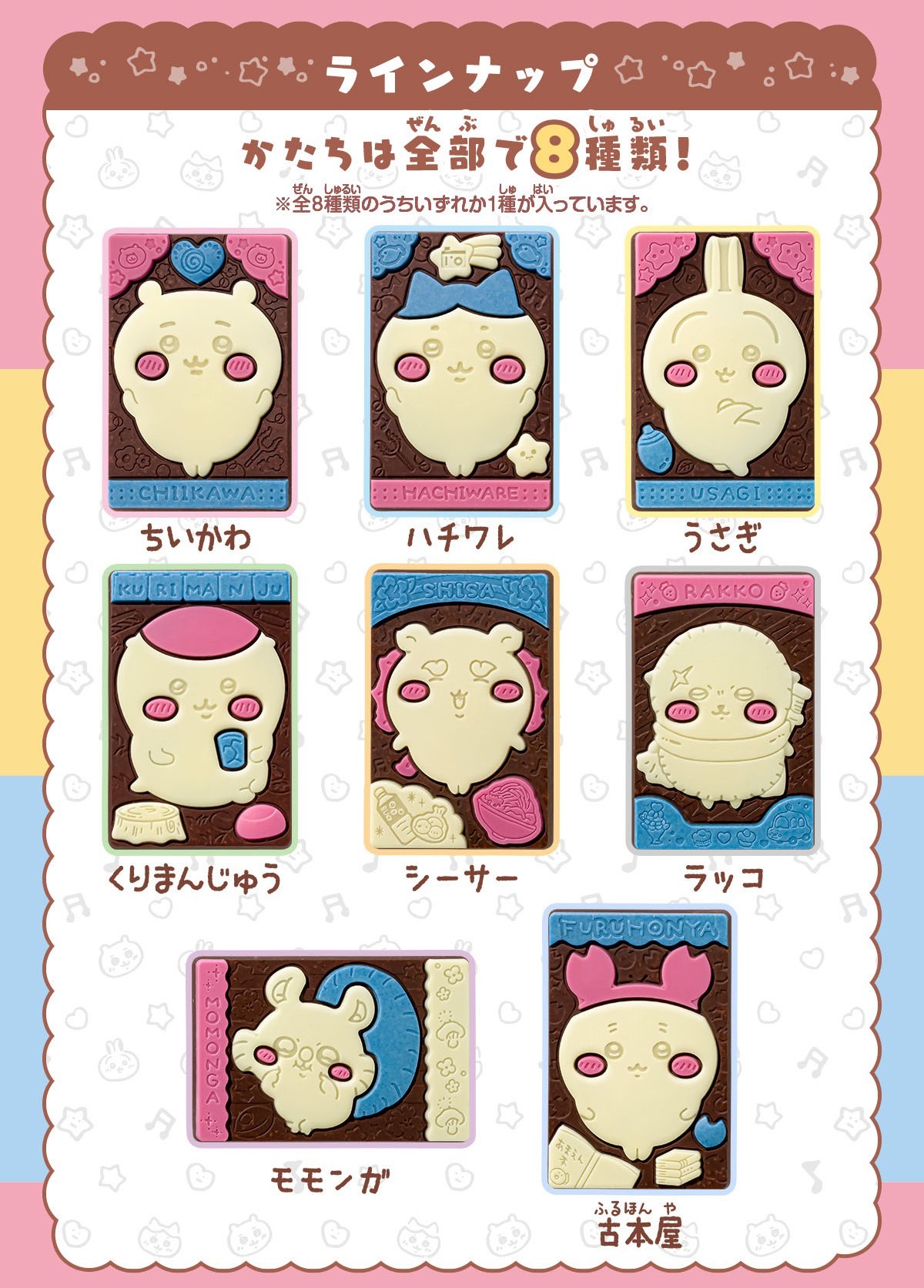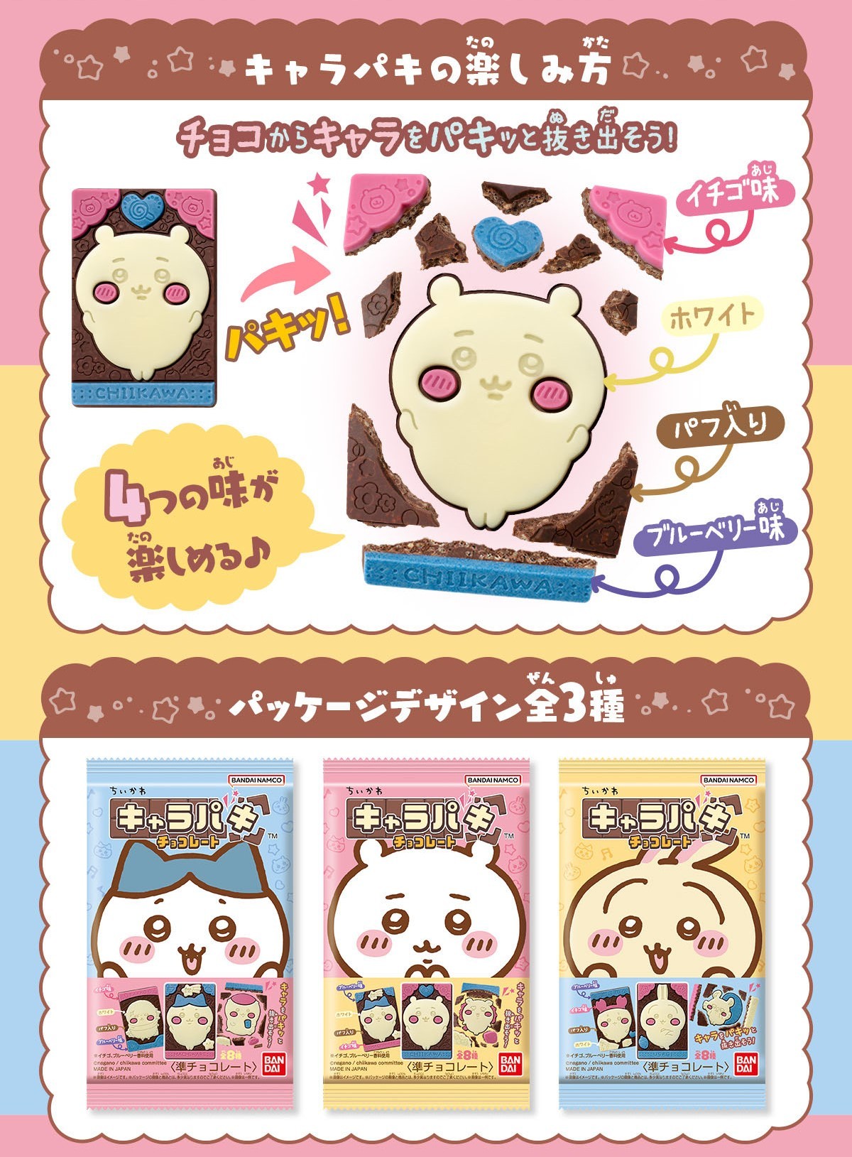 日本萬代玩具公司旗下食玩事業部「BANDAI CANDY」的超人氣商品「發掘巧克力風味糖」,這次將以大朋友小朋友都愛的《吉伊卡哇》為主題,推出『吉伊卡哇 發掘巧克力』!一共有 8 種款式,預計於 2024 年 09 月發售。