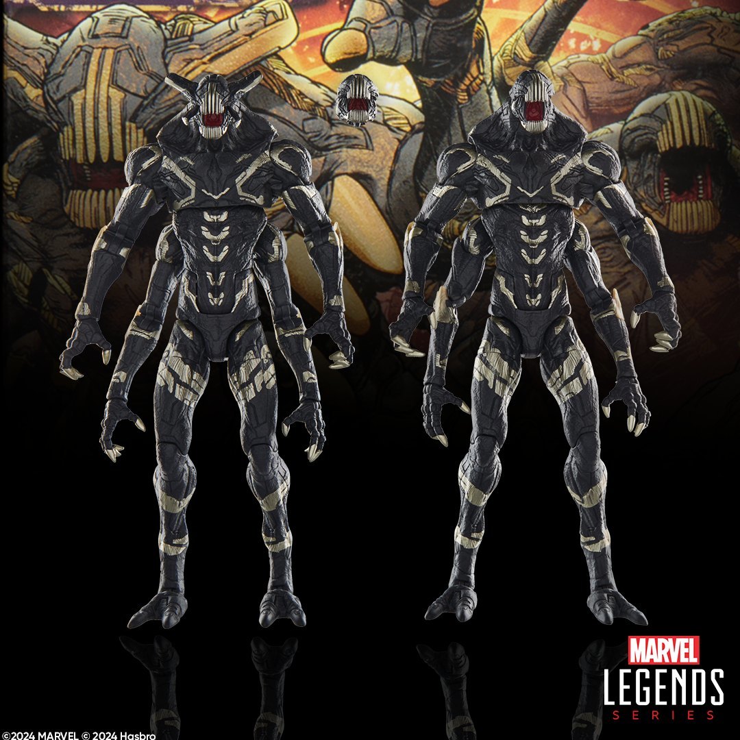 本次的 Marvel Legends 先遣者 6 吋可動人偶本體實際高度來到了 19.5 公分,還原劇中比一班人類更加高大的身形,雕刻出纖細修長的身軀與四周手臂的詭異生物感,令獵鷹驚嘆的利牙也細緻再現!配件附上了一顆不同造型的先遣者頭雕,雙人組合包的形式可以讓各位玩具人透過購買多組輕鬆組成大軍,再現與英雄們的戰鬥!