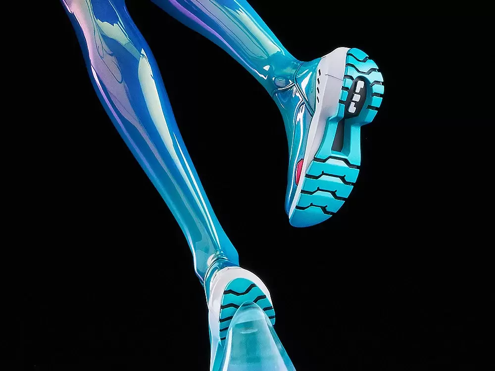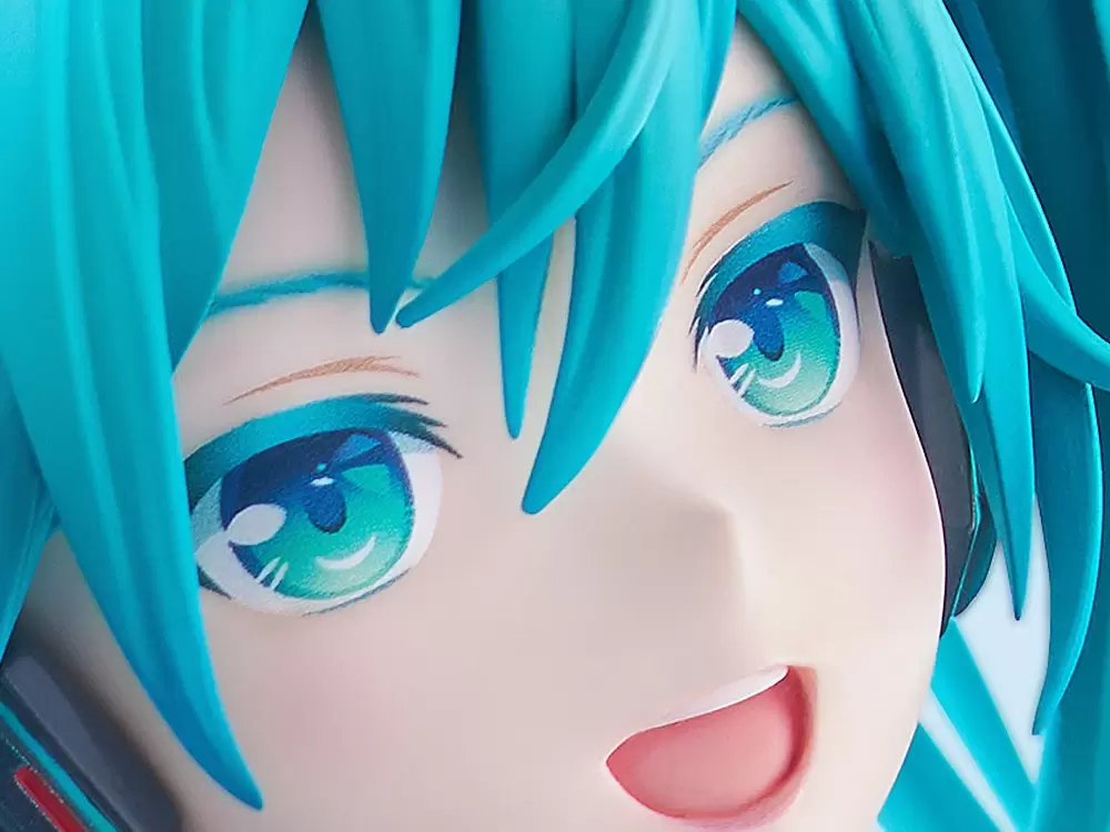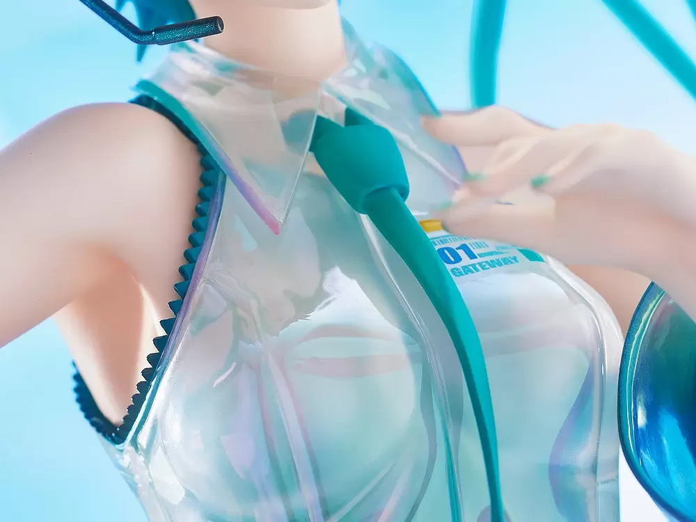 『初音未來 0x27 Eternal Stream』1/4 比例模型,以特別舞台「MIKU FES'24(春)~Happy 16th Birthday~」的主視覺為基礎,將繪師 redjuice 所繪製的插畫立體化,尺寸高約 41 公分,飄逸的髮絲更是長達 47 公分,整體非常有份量,可以在細節上更為講究。為徹底還原插畫的氛圍,在襯衫、袖套與膝上襪等處施加極光塗層,搭配透明零件的重疊分層結構,在綻放魅力光芒的同時也呈現出充滿前衛科技風格獨特的質感。