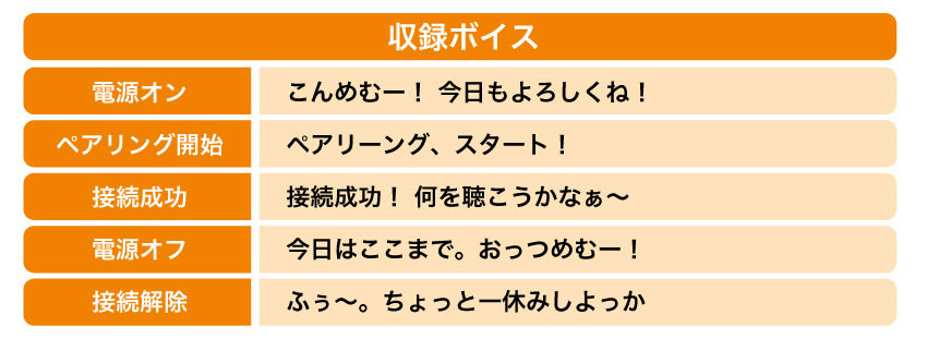 少不了的就是提示語音囉 ! 四位聲優 : 大塚剛央、伊駒百合繪、潘惠美與大久保瑠美都錄製的專屬的語音,讓角色能夠陪伴你享受音樂生活。