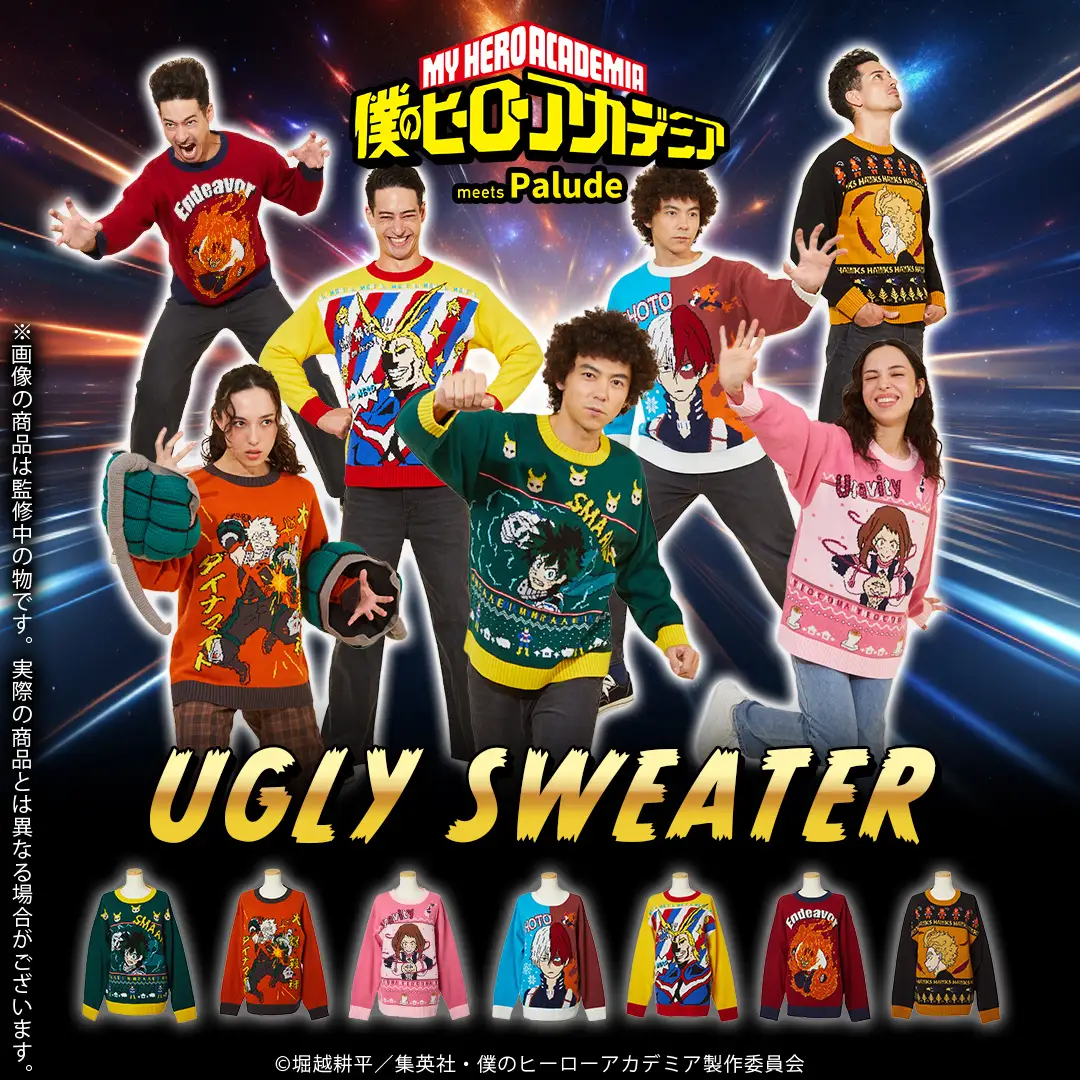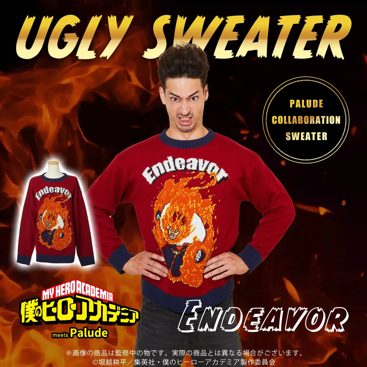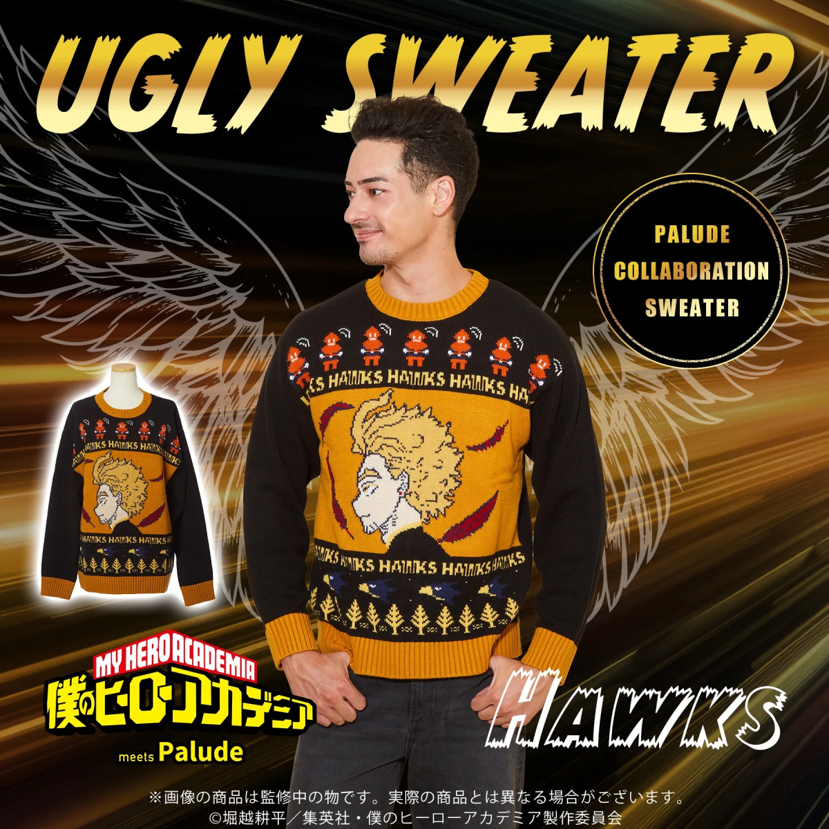 這次使用的圖案延續醜毛衣該有的滿版設計,以《我的英雄學院》三位戰力堅強的職業英雄 : 歐爾麥特、奮進人與霍克斯來設計,人物大頭大方的放在衣服上讓你穿出眾人矚目的風格,相信各位也是...可以穿得很有型吧 XD。