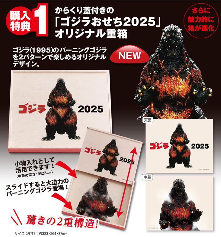 近日怪獸之王《哥吉拉》也宣布推出 2025 年的正月年菜給大家訂購啦!以精美的盒裝、料理與眾多特典周邊搭配組合,讓各位哥佬粉可以與其同慶正月,目前於株式會社 DeAGOSTINI 網站預購,可選擇於今年年底或明年年初送到府上。