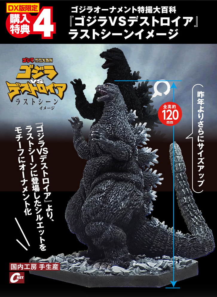 另外,當然少不了的就是哥佬本人的玩具,購買 DX 版年菜還附贈《哥吉拉vs戴斯特洛伊亞》手作雕像,12 公分雖不大,但經典電影最中場景造型絕對是值得珍藏。