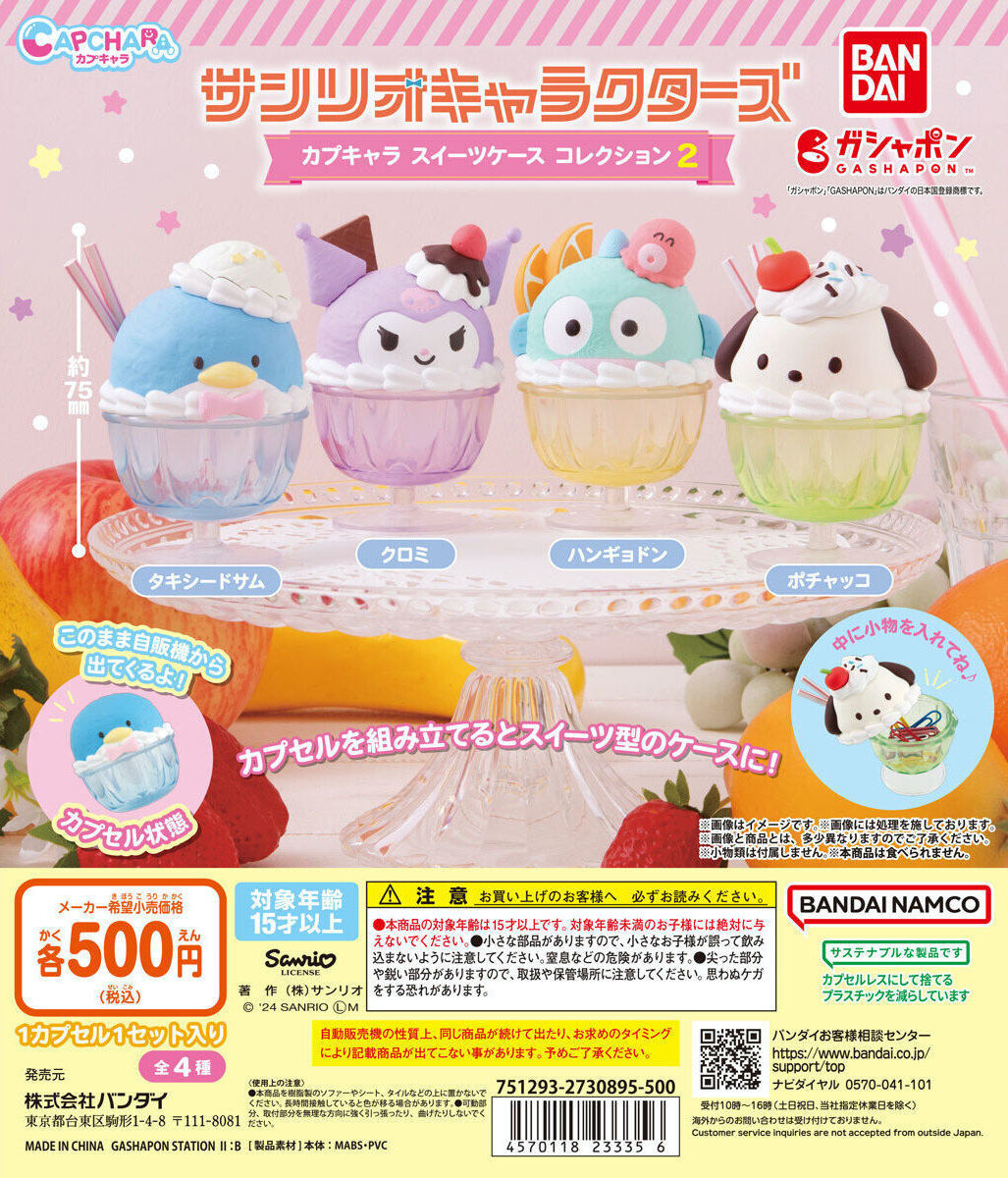 萬代公司轉蛋事業部 GASHAPON 推出人氣的三麗鷗明星為主題的新商品——「三麗鷗明星 CupChara 甜點盒收藏 2」轉蛋,參考售價為每轉 500 日圓,預計於 2024 年 09 月第二週發售!