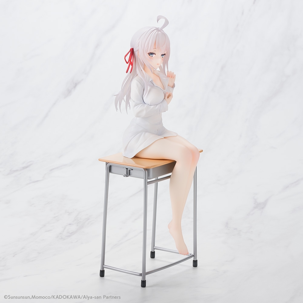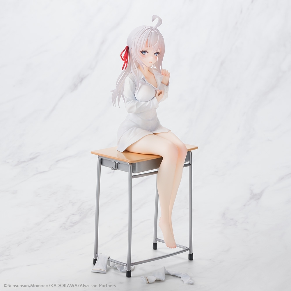 本次以 22.5 公分高度立體化的艾莉竟然只穿著一件白色的長袖襯衫坐在課桌上,正在寬衣解帶的樣子加上一臉害羞的神情表現,果然是被「有希」給催眠了!而艾莉招牌的銀白色長髮、紅色髮帶、搶眼的呆毛,以及彷彿散發藍寶石光芒的雙眼都考究還原,加上施以特殊加工的白皙肌膚,充分表現出柔嫩質感,本作更是融入動畫第一集、艾莉戲弄久世的「幫自己穿襪子」的福利橋段,附上了一雙乾淨、呈現出自然皺褶的白色襪子,超色。