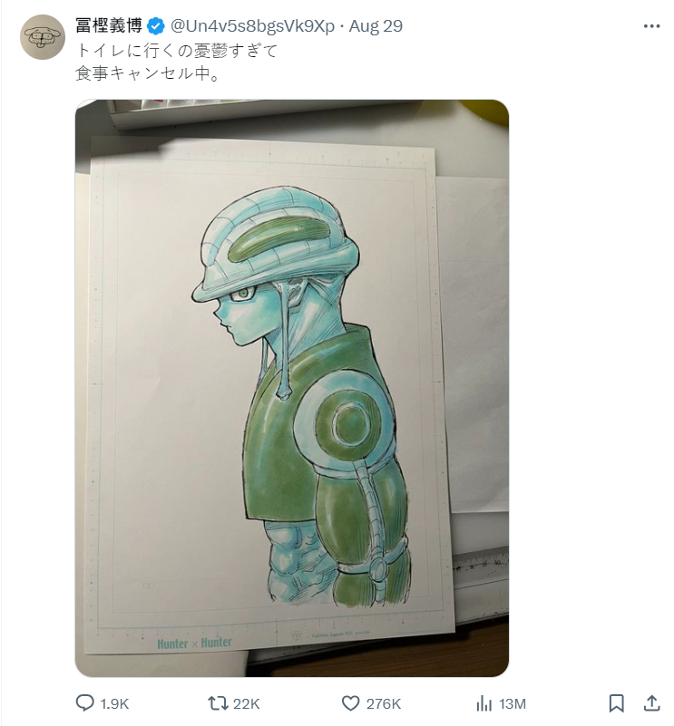 今年 5 月起冨樫義博的官方 X 帳戶就持續更新,不只工作進度外還分享不少珍貴的早期手稿,吸引不少粉絲關注。最近他也 X 上表示困擾自己許久的腰痛問題,似乎找到原因了,發現自己的工作需要調整的地方。