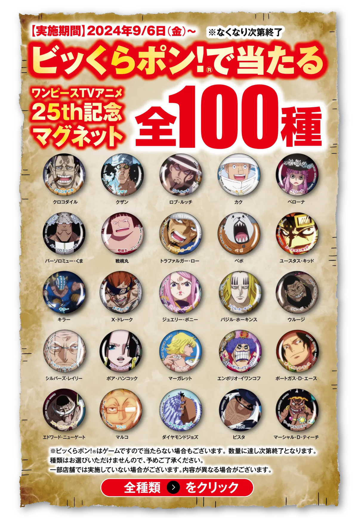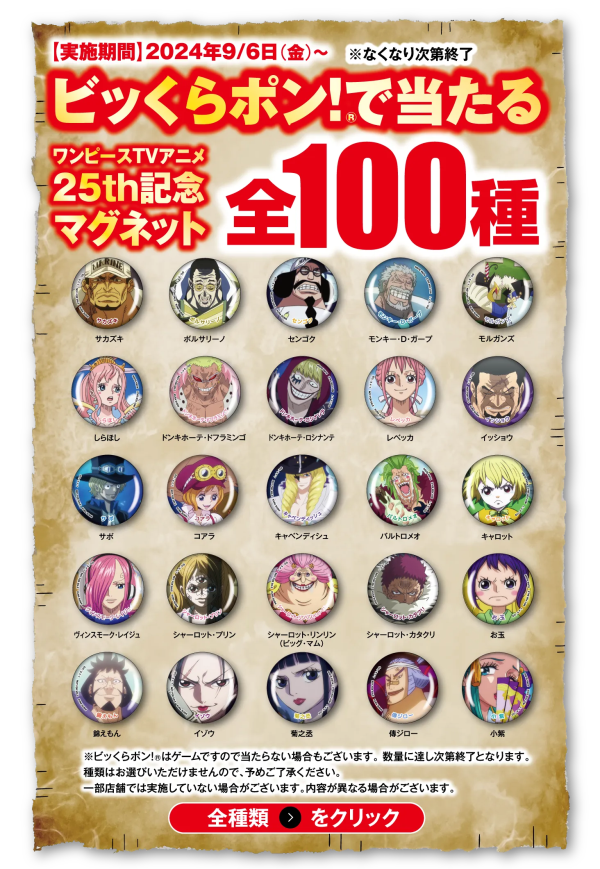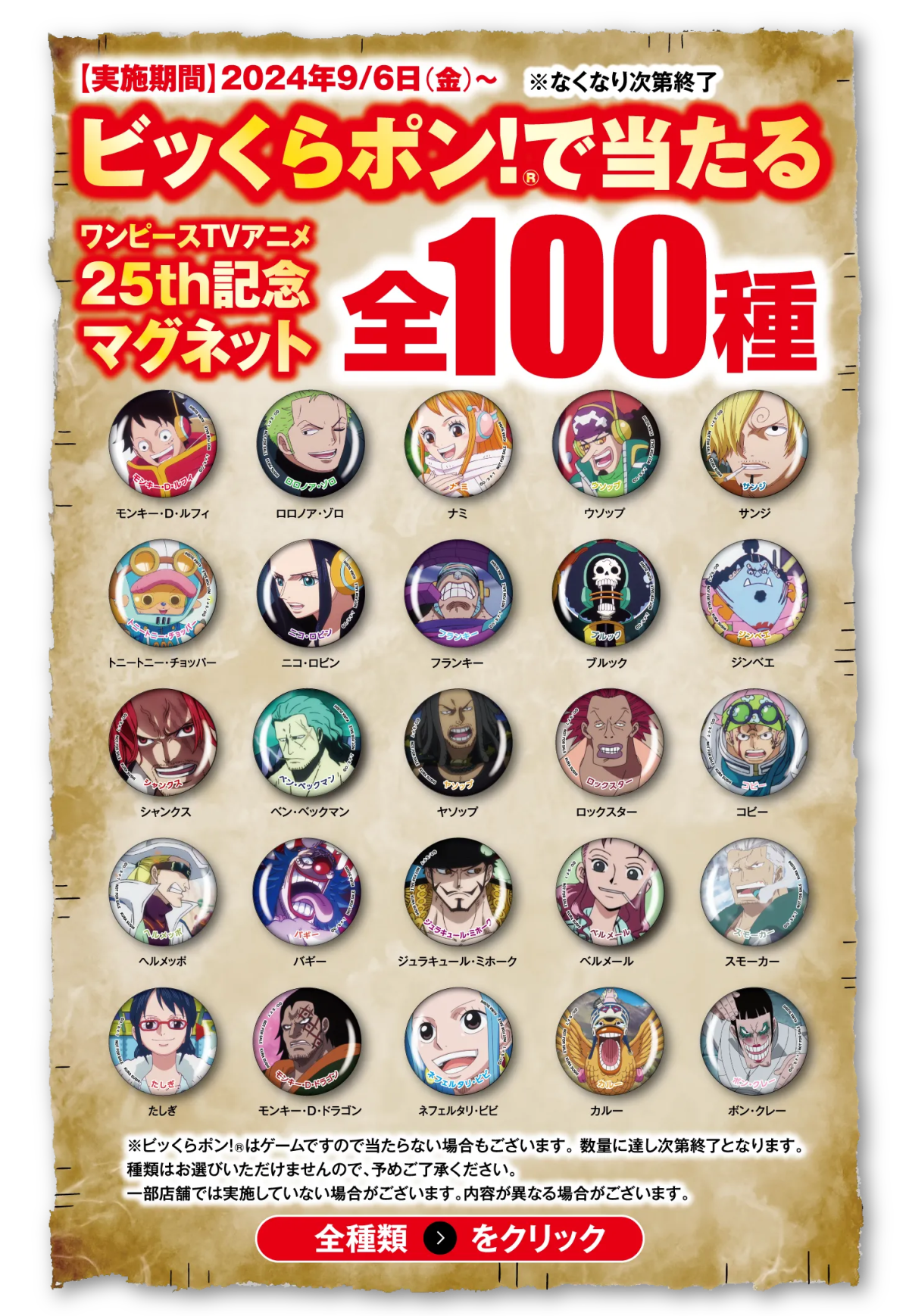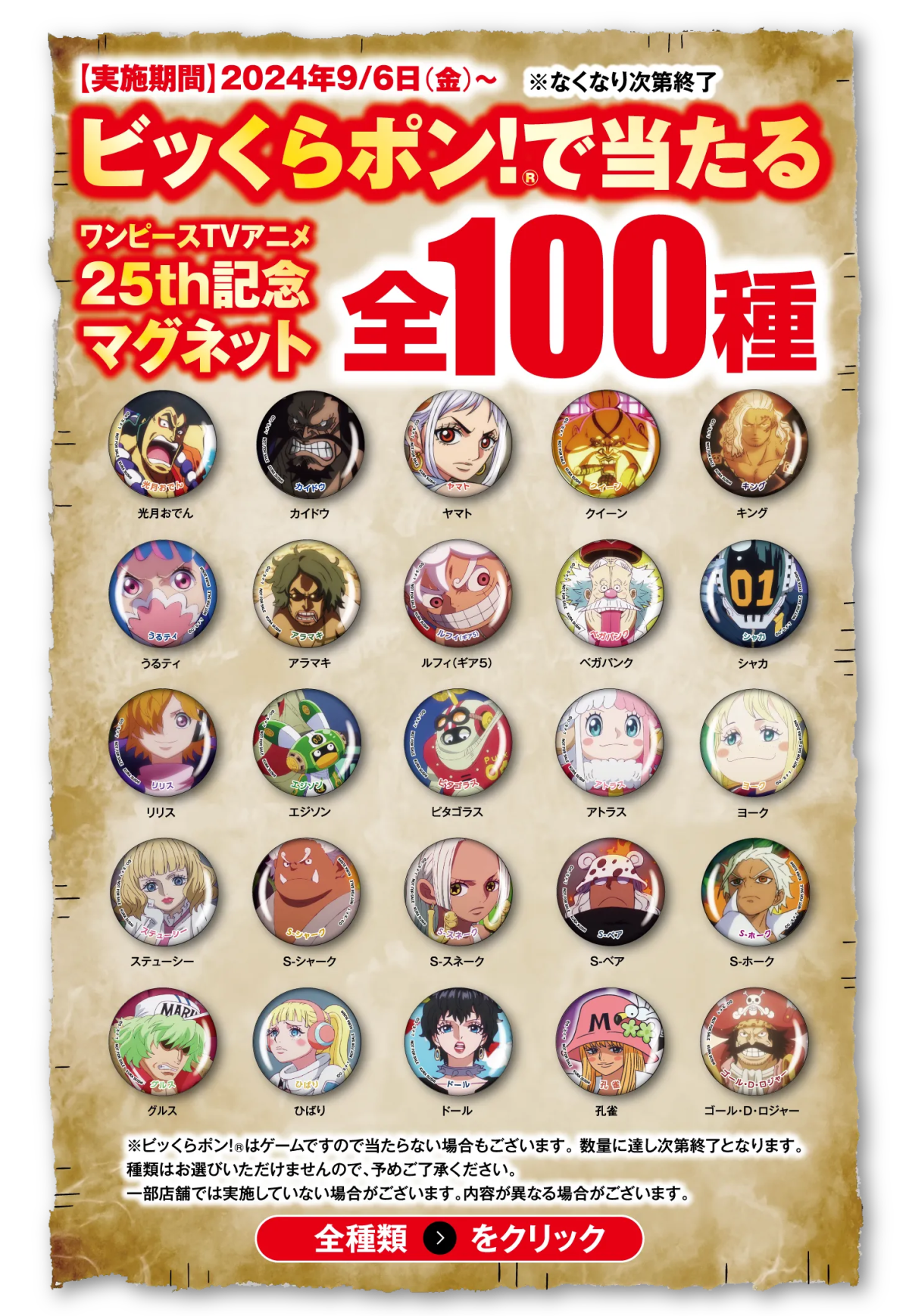 講到藏壽司,就不能忘記店內消費的轉蛋趣味設施,這次也將會有特別轉蛋推出,這次是 100 款人物樣式的圓形磁鐵,來慶祝動畫 25 周年。